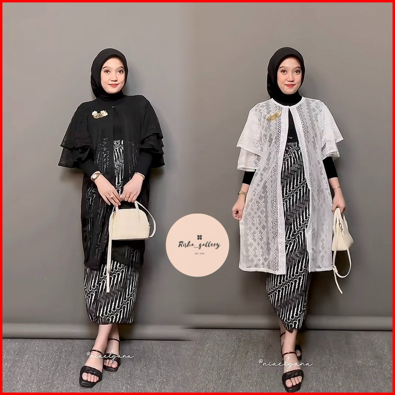 Mallika Outer Brukat Premium Lengan Ruffle Kondangan Outfit