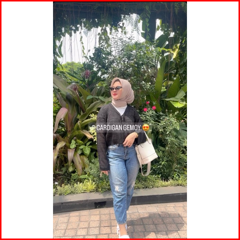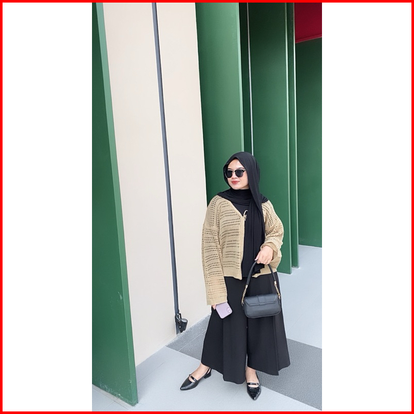 Xeriastore - Arumi Cardigan Crop Jaring Korean Style Knitwear Wanita Premium