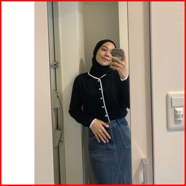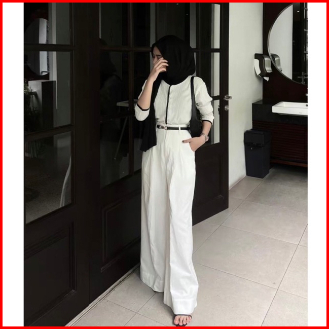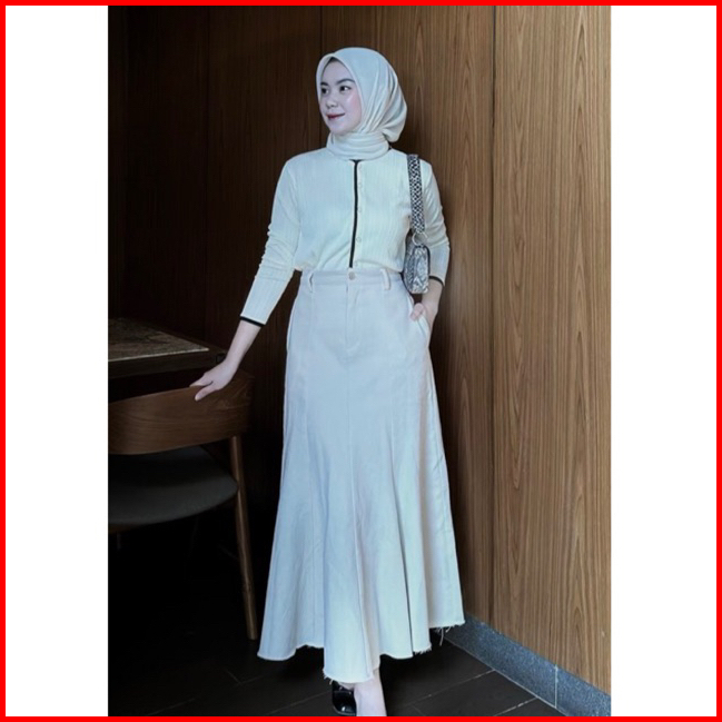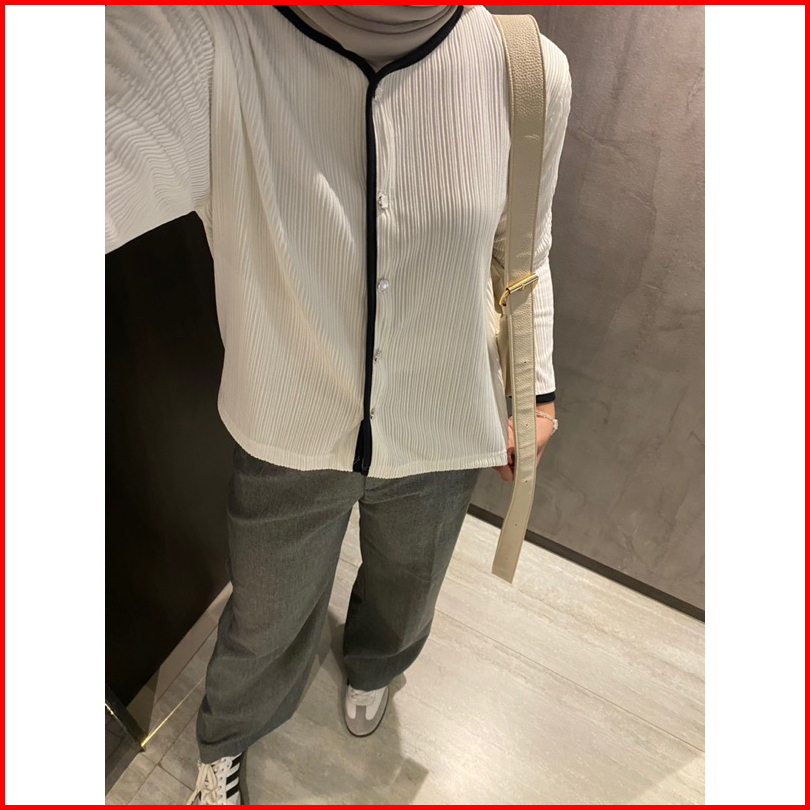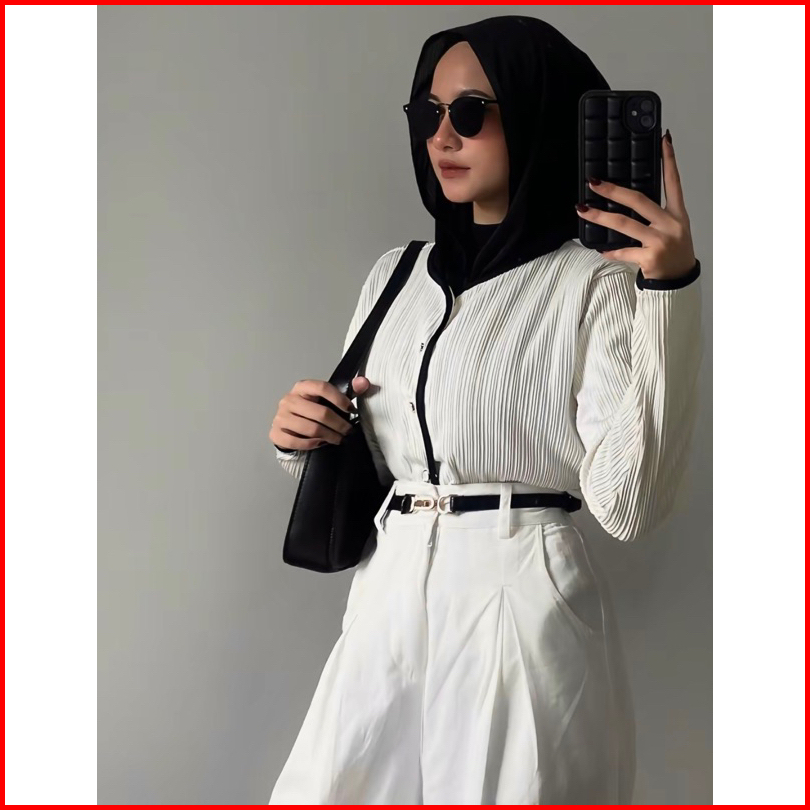 Gea List Outer Pleats Knit Putih Elegan