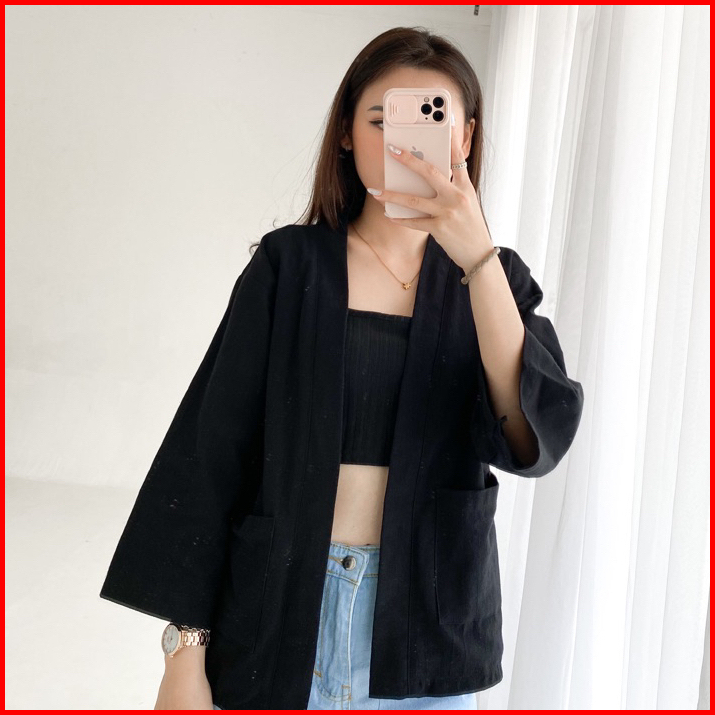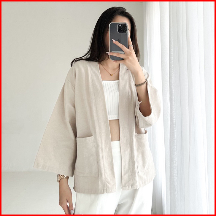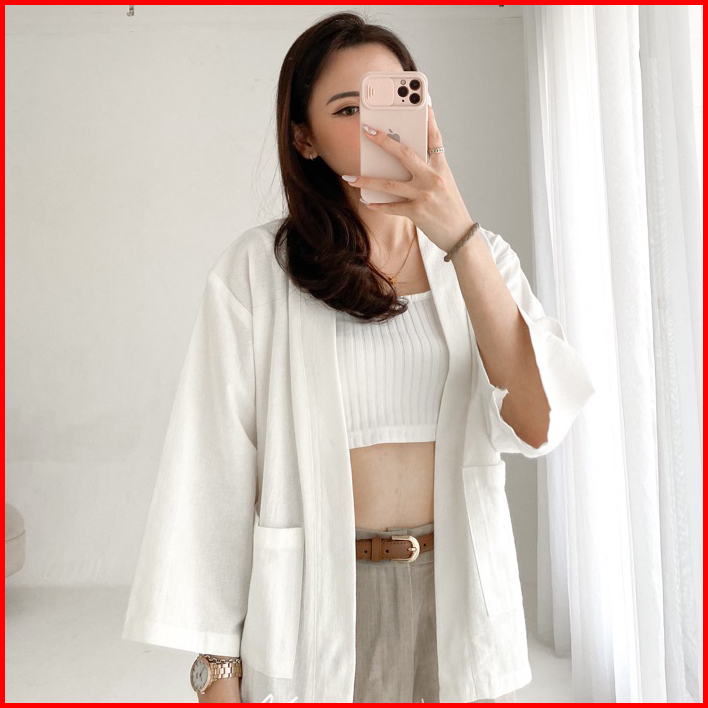 Diana Outer Wanita Crop Outer Kiyowo Cardi Crop Linen Crinkle Atasan Wanita