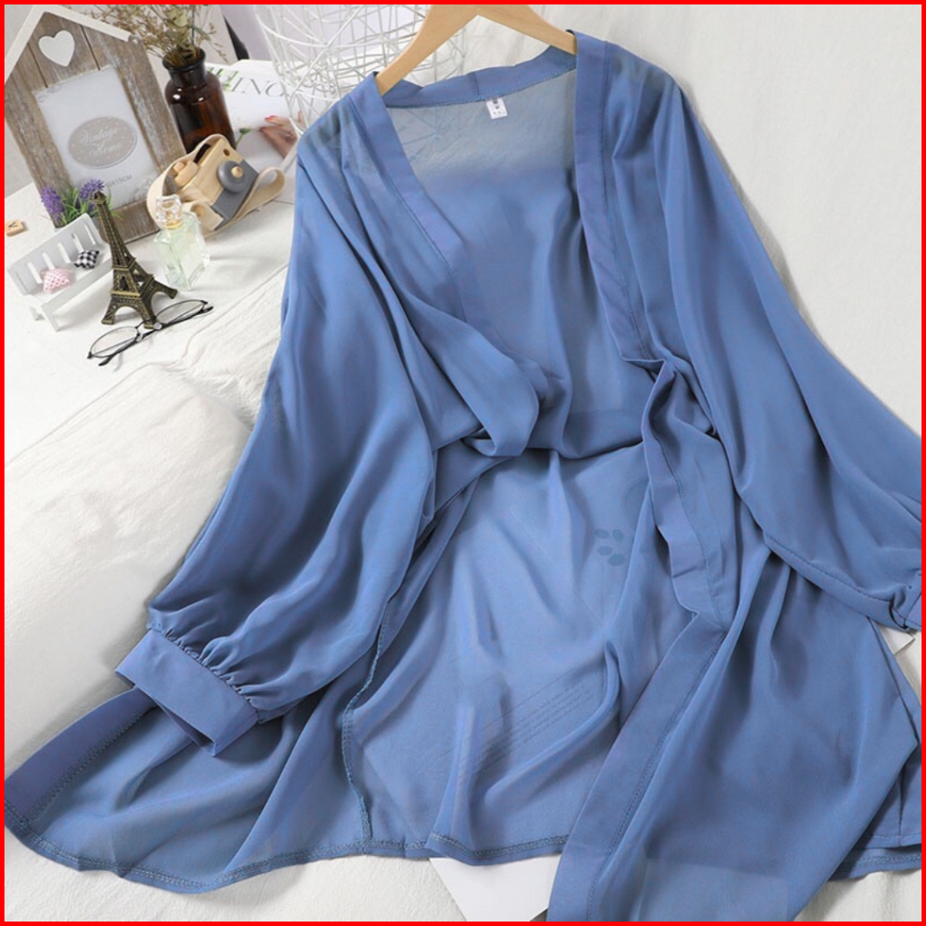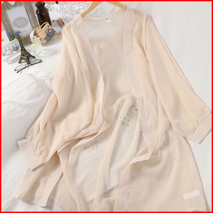 Cardigan Pantai Cardigan Ceruty Lengan Panjang Outer Musim Panas Outer Wanita Korean Style Blazer