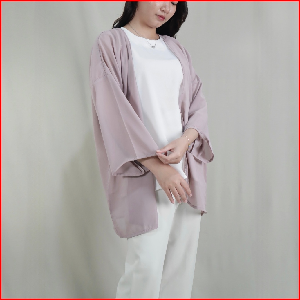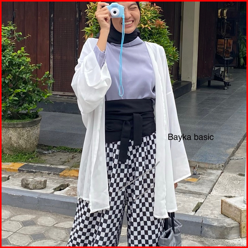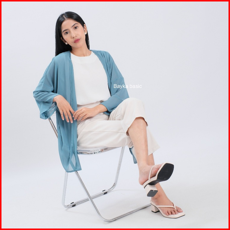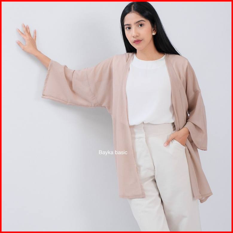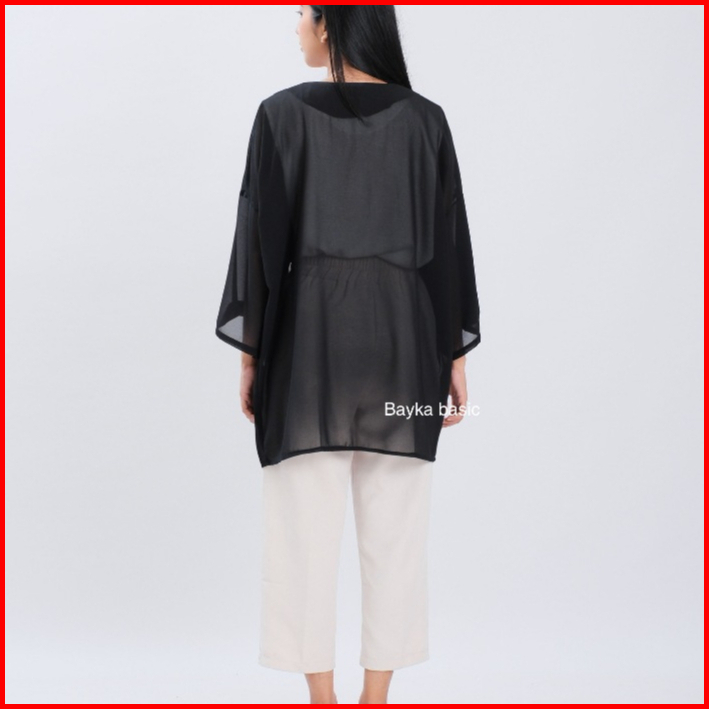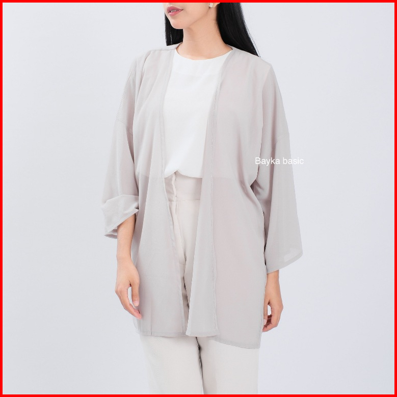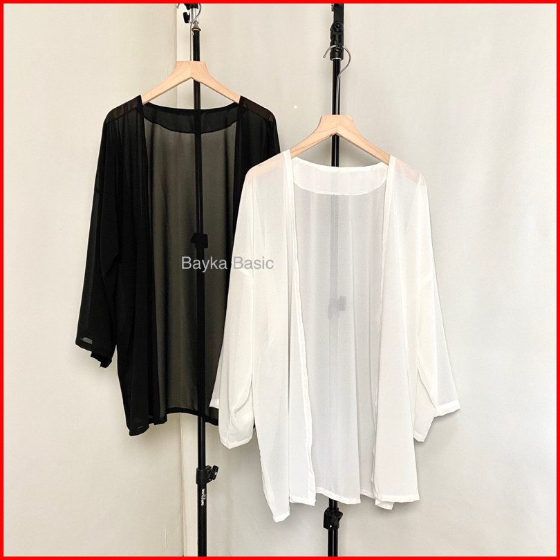 Bayka - Outer Cardigan Transparant Ceruty Luna Sheer Lengan Panjang Flowy Simple Oversize Wanita