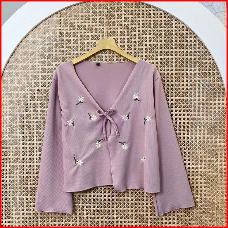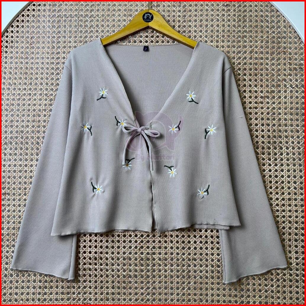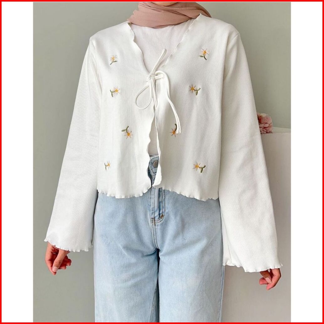 Bordir Flower Jasmine Cardy Bow Cardigan Kardigan Motif Bunga Outer