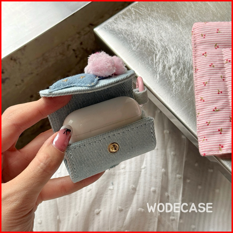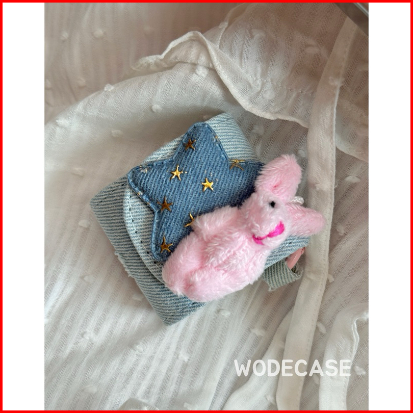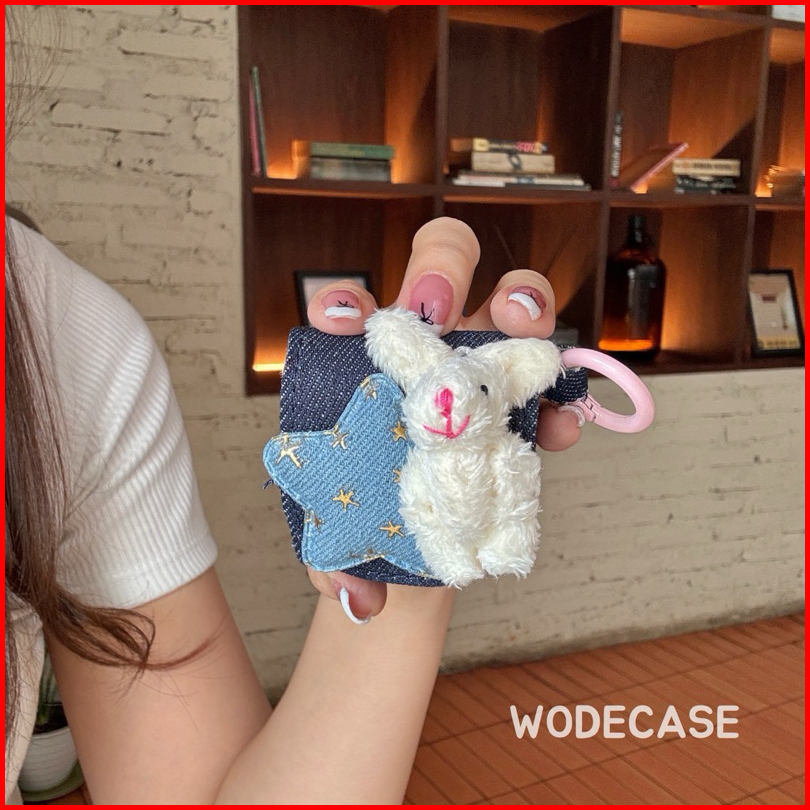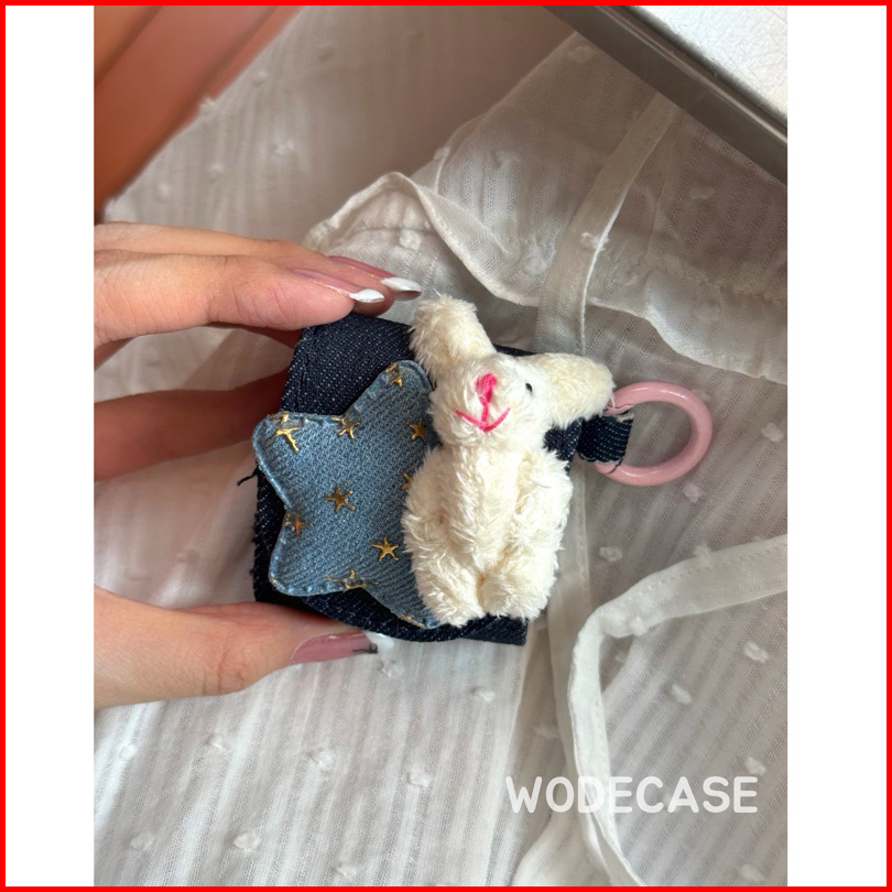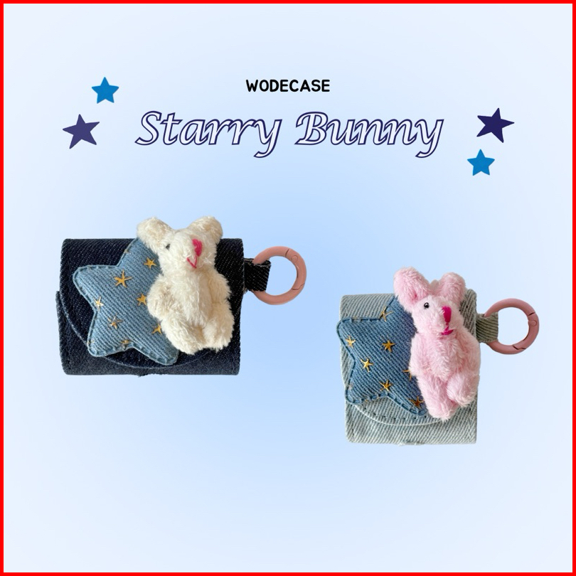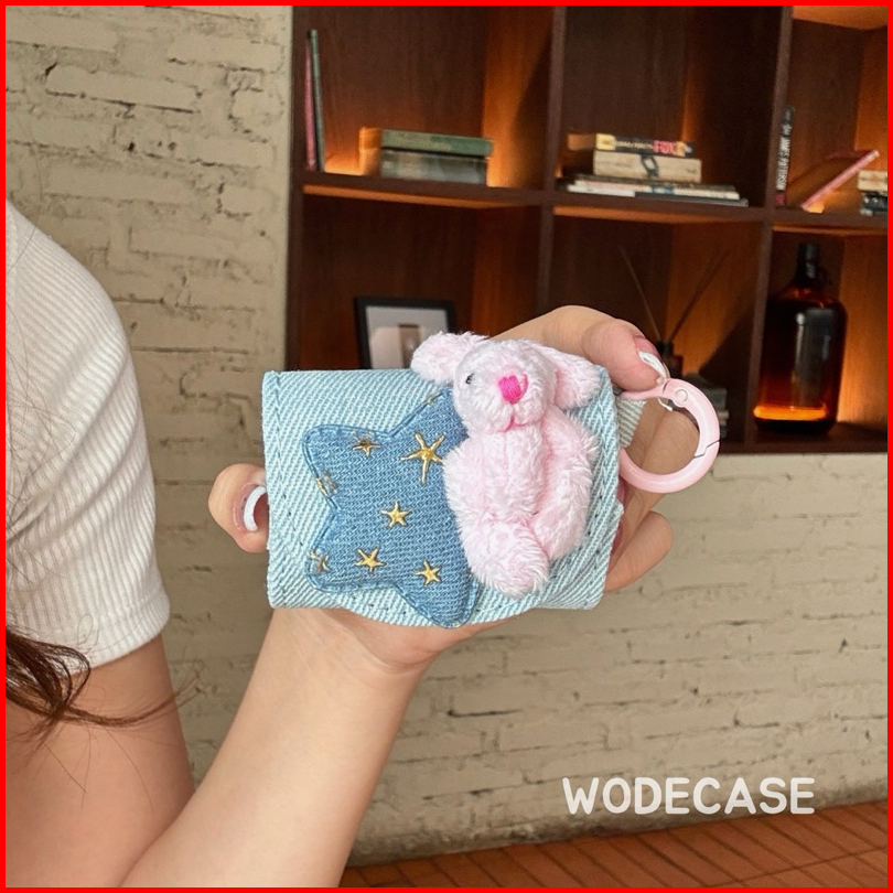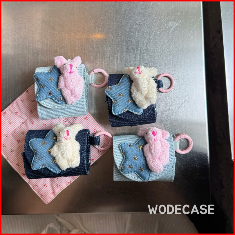 Wodecase Starry Bunny Denim Jeans Case Dompet Untuk Airpods Gen 1 2 Pro Pro Gen 2 Gen 3