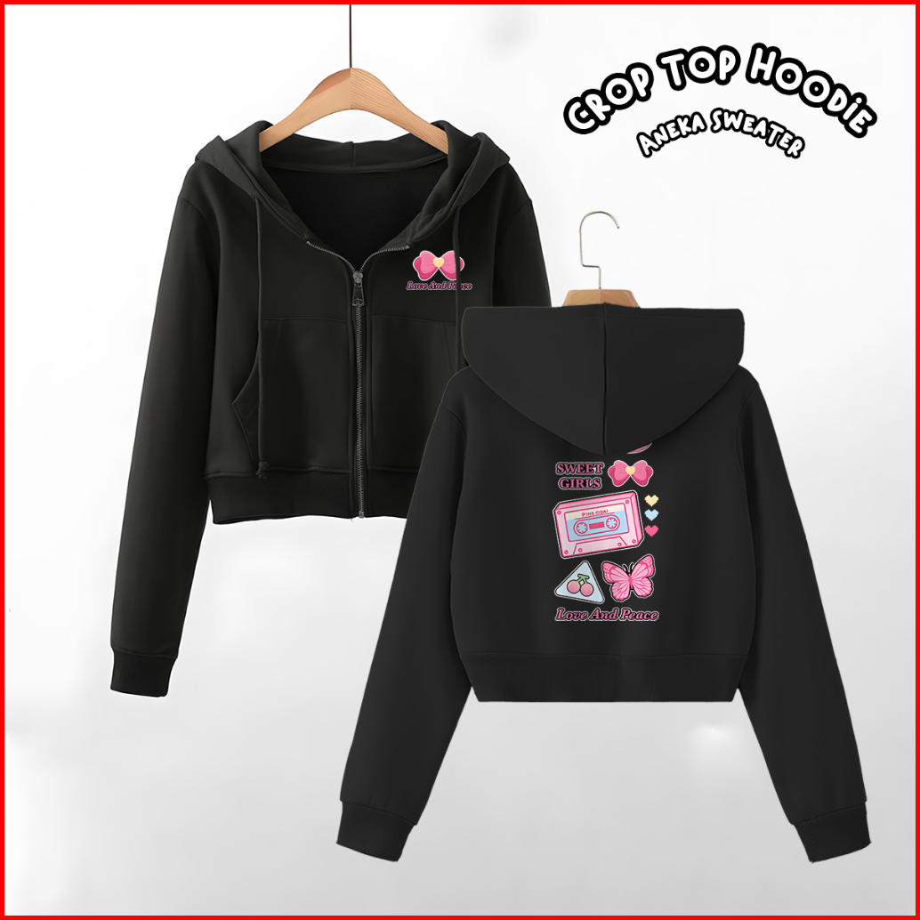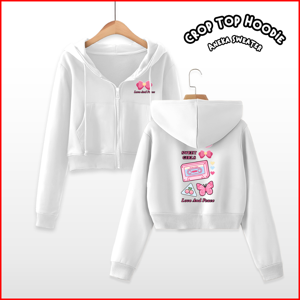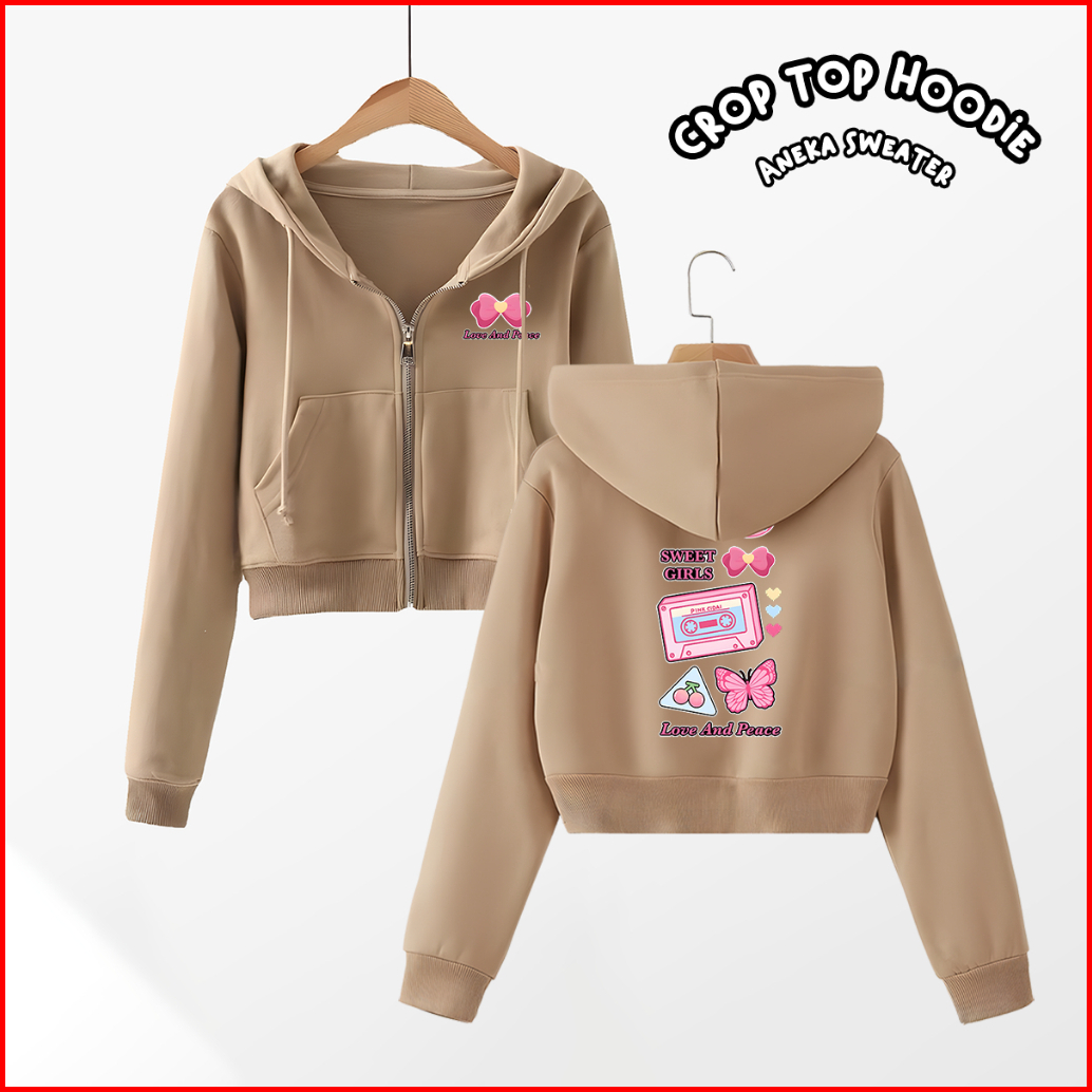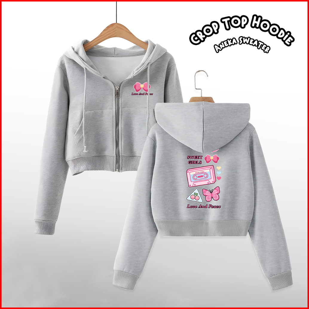 Sweater Hoodie Jaket Basic Sablon Love Peace Croptop Zipper Resleting Wanita Fashion..