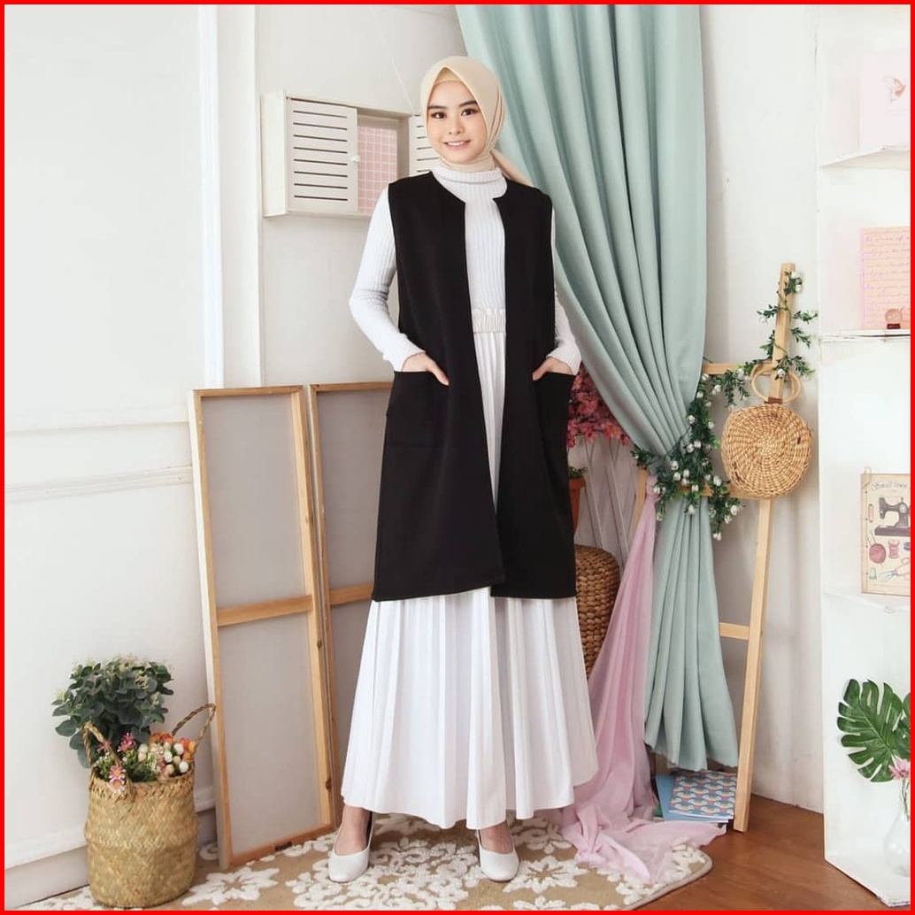 Azalea Outer Tanpa Lengan Premium - Kalea Outfit Long Cardy Highwais Polos - Odiva Cardi Termurah - Blazer Wanita Bahan