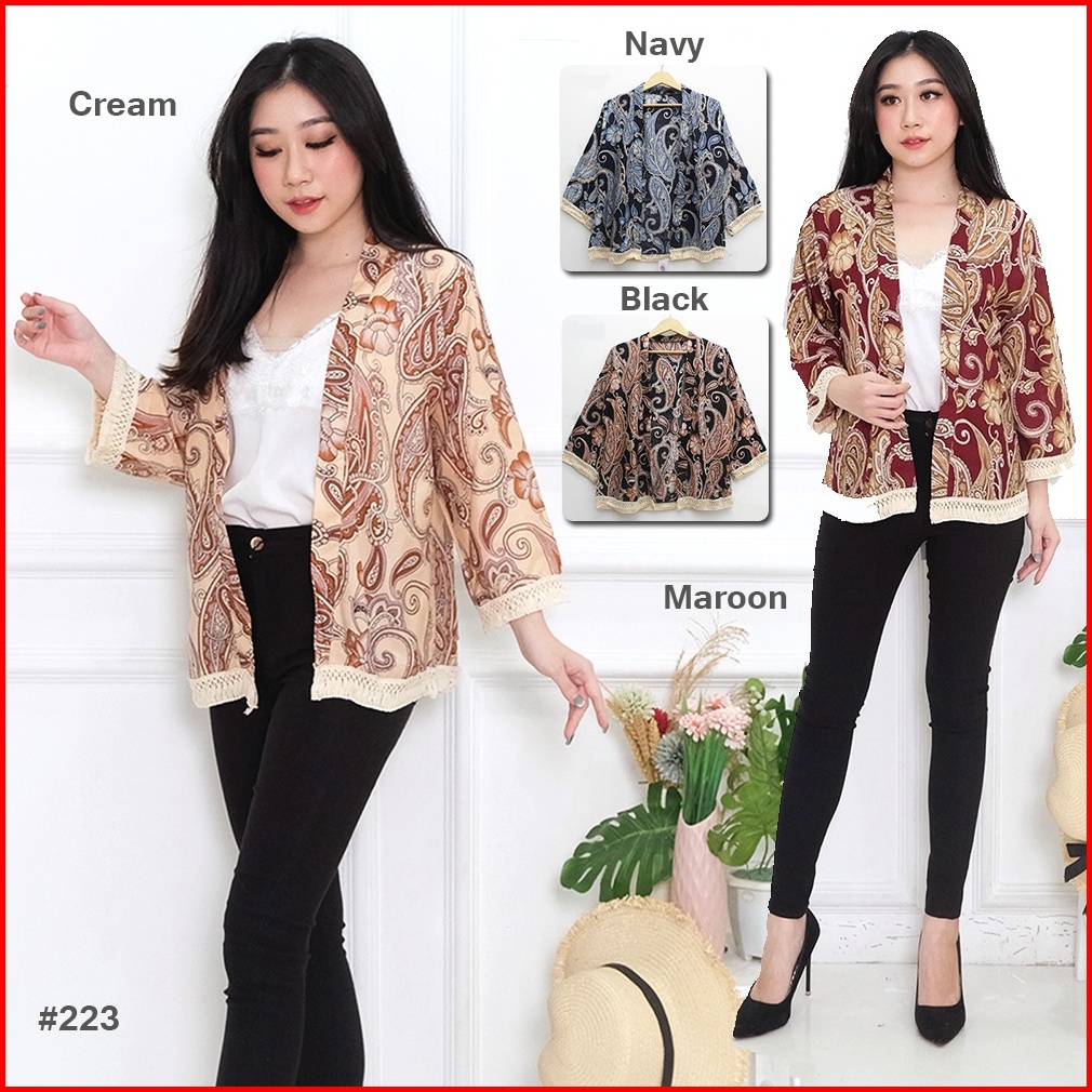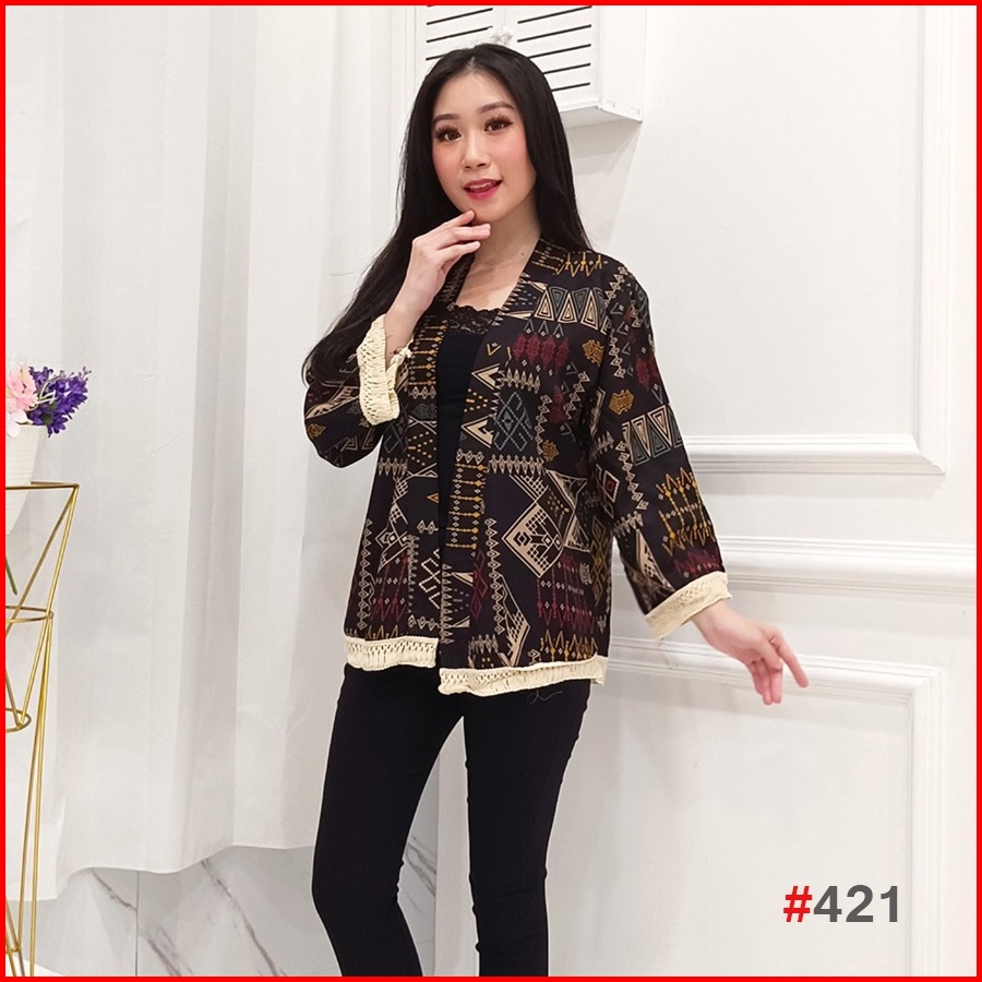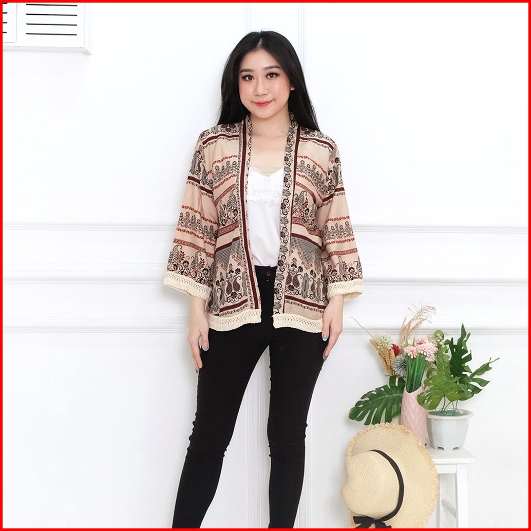 Cardigan Batik Tribal Katun Etnic Bohemian Rumbai Outter Renda Cream Boho Kardigan