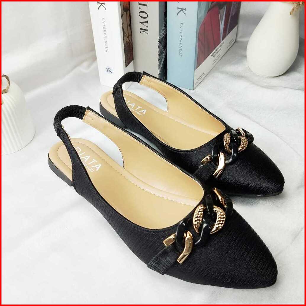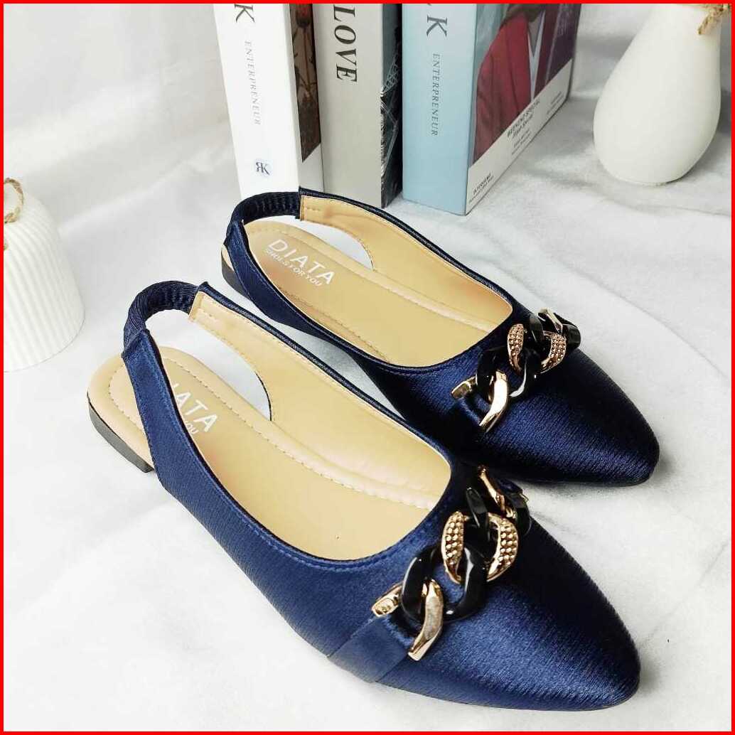 Diata - Sandal Flat Sol Karet Wanita Rantai Besar Kondangan Pesta Kasual