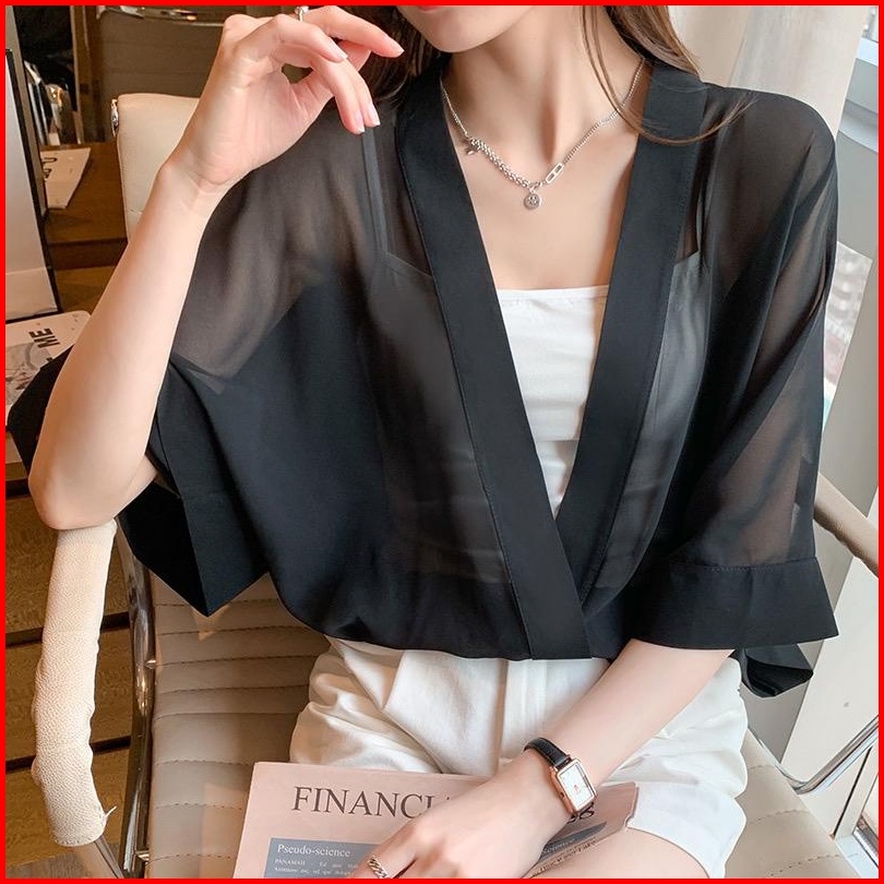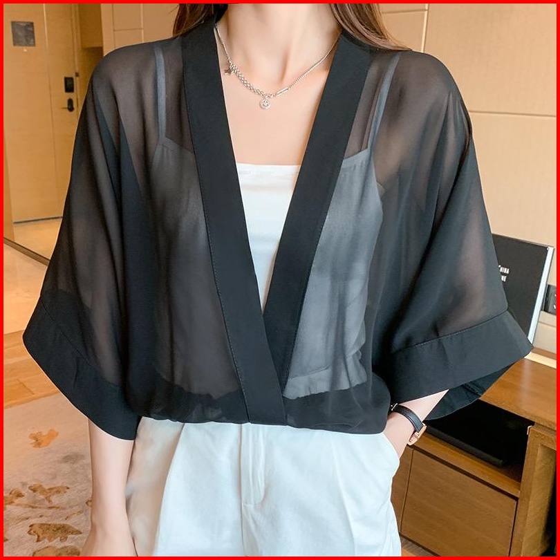 Outer Crop Alena Cardigan Top Oversize Bahan Ceruty