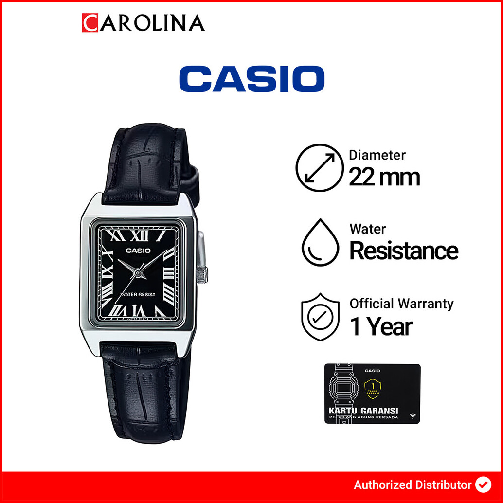 Jam Tangan Wanita Casio Ltp-v007l-1b Tank Black Dial Black Leather Band