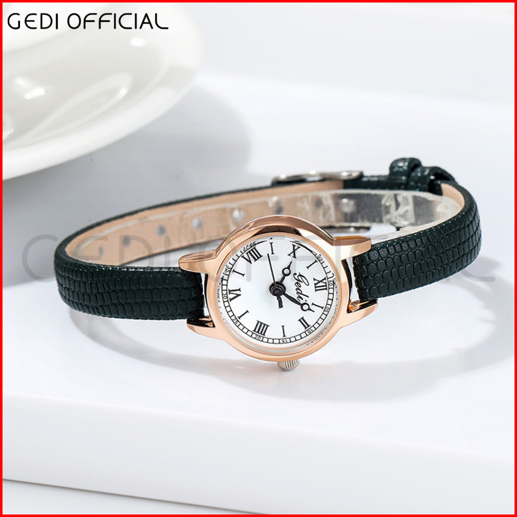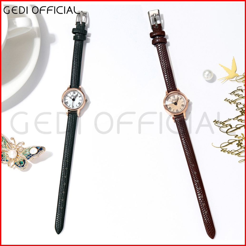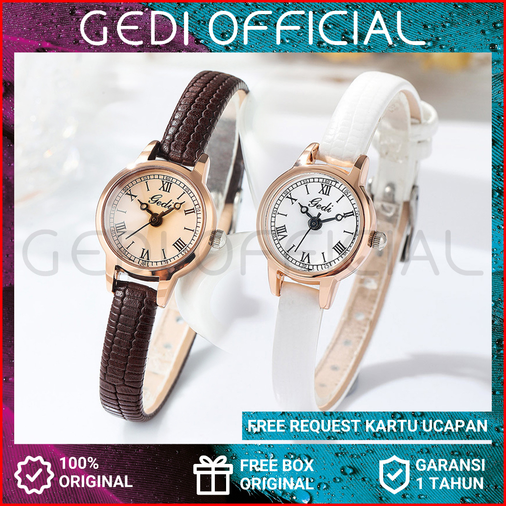 Gedi 14011 Retro Jam Tangan Wanita Original Vintage Casual Leather Quartz Movement Water Resist