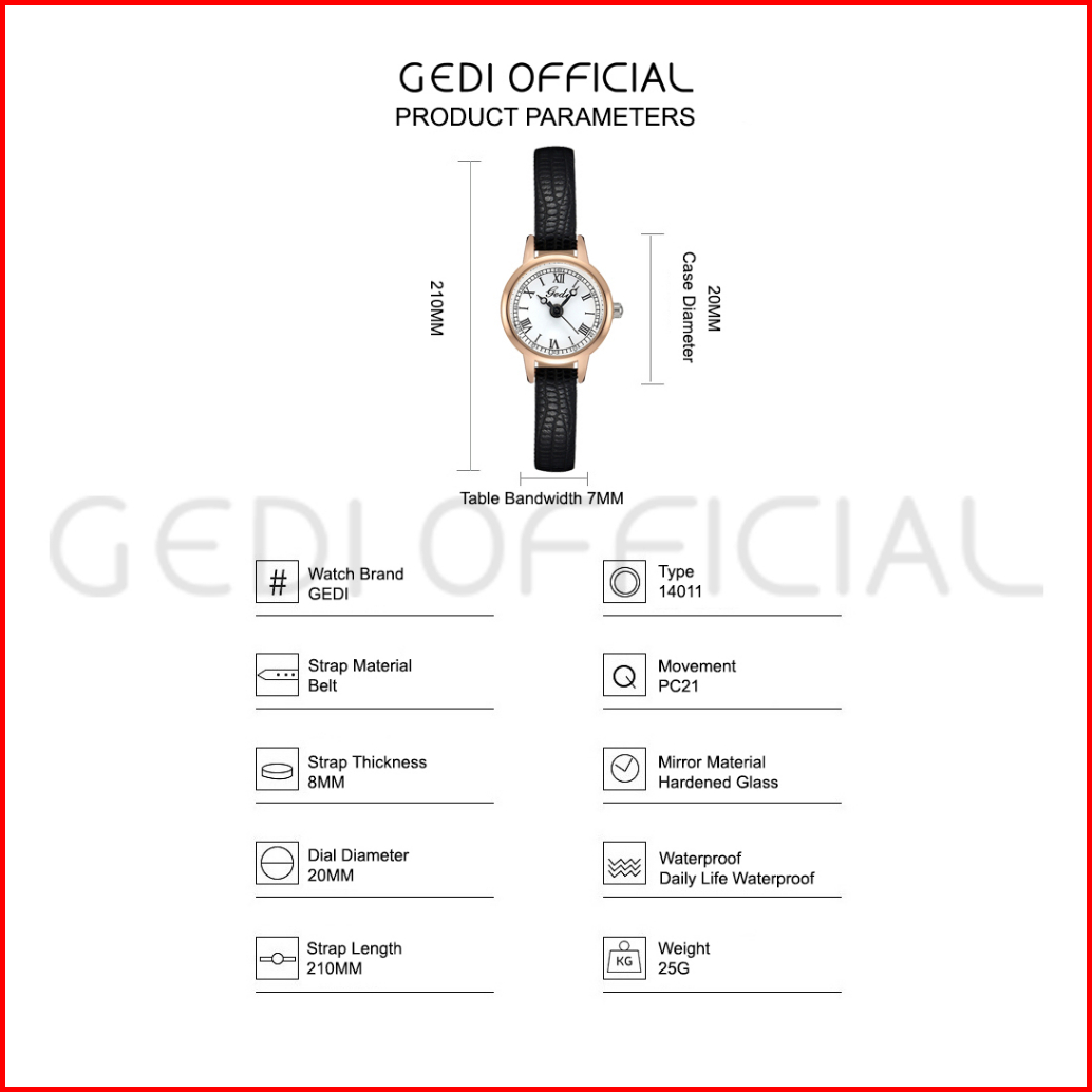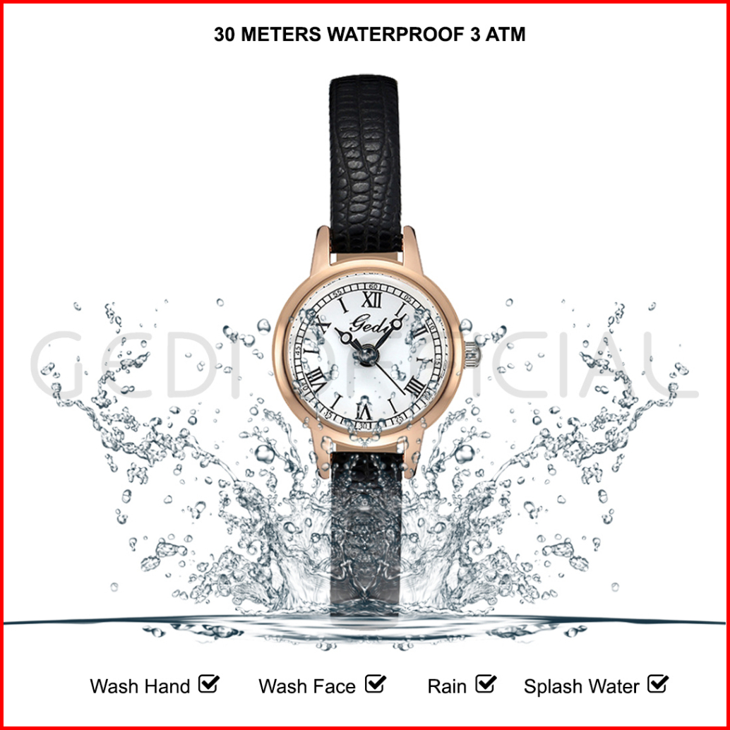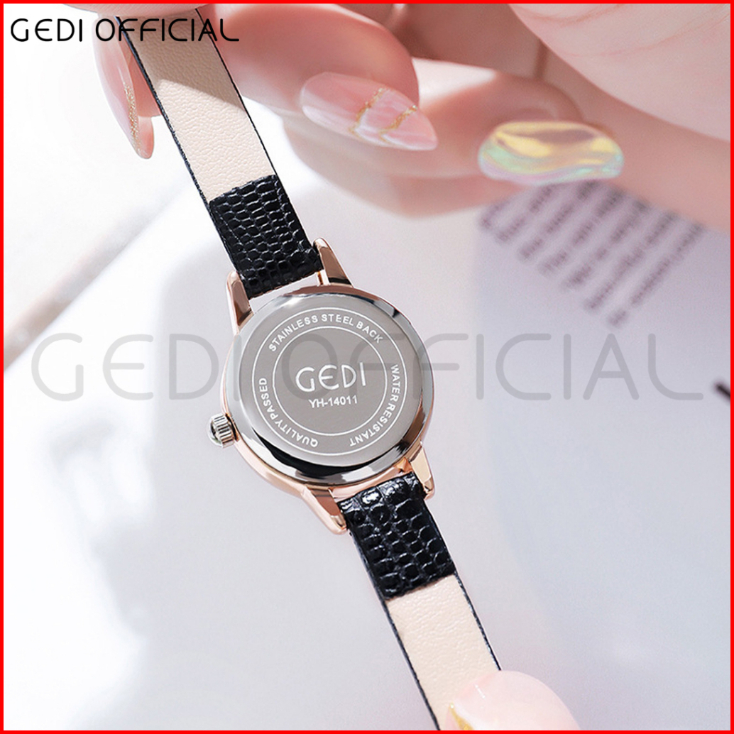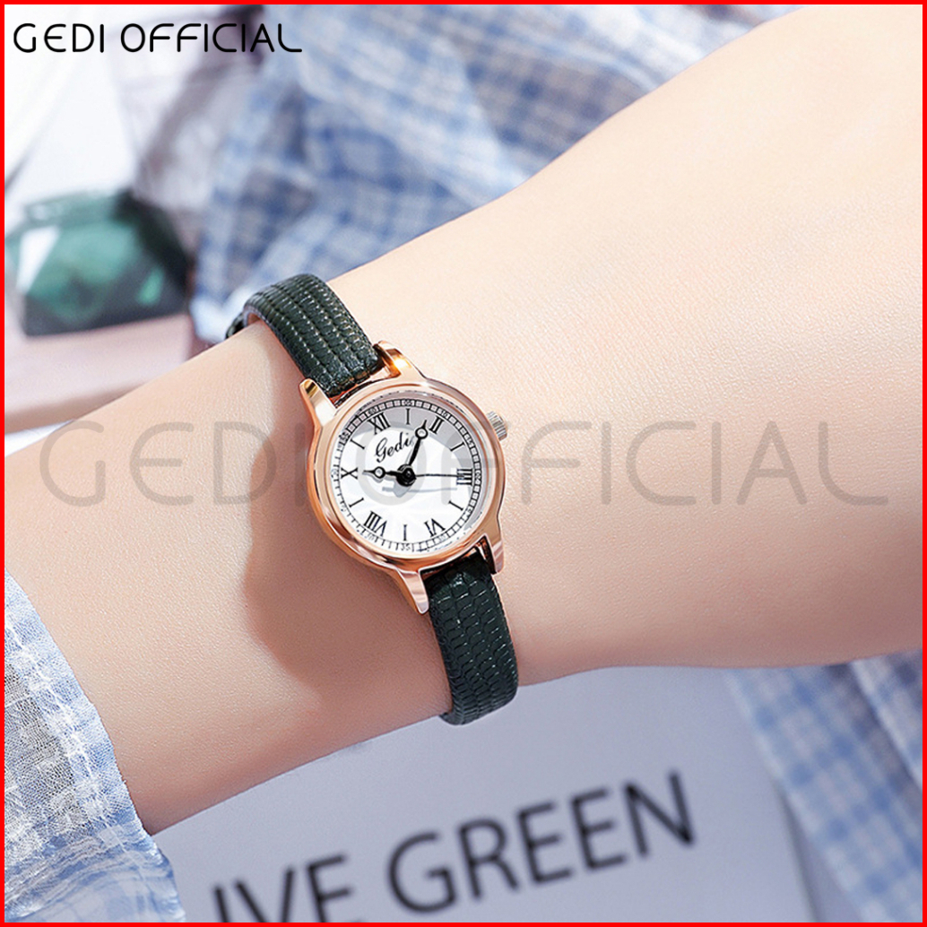 Gedi 14011 Retro Jam Tangan Wanita Original Vintage Casual Leather Quartz Movement Water Resist