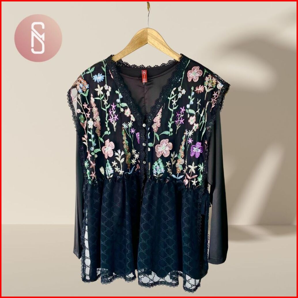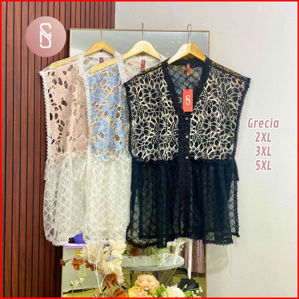 Myshawl Grecia Maya Outer Atasan Jumbo Brukat Tille Motif Kasual Kondangan Wisuda Kekinian Big Size Brukat Bunga Jumbo