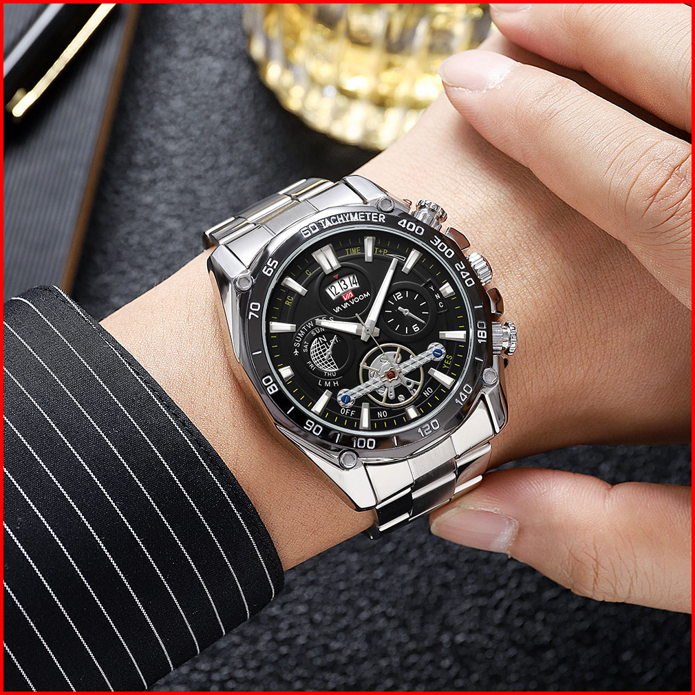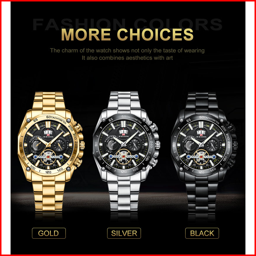 Vavavoom 2421 Jam Tangan Pria Stainless Steel Analog Quartz Original Tahan Air Watch Kotak Gratis