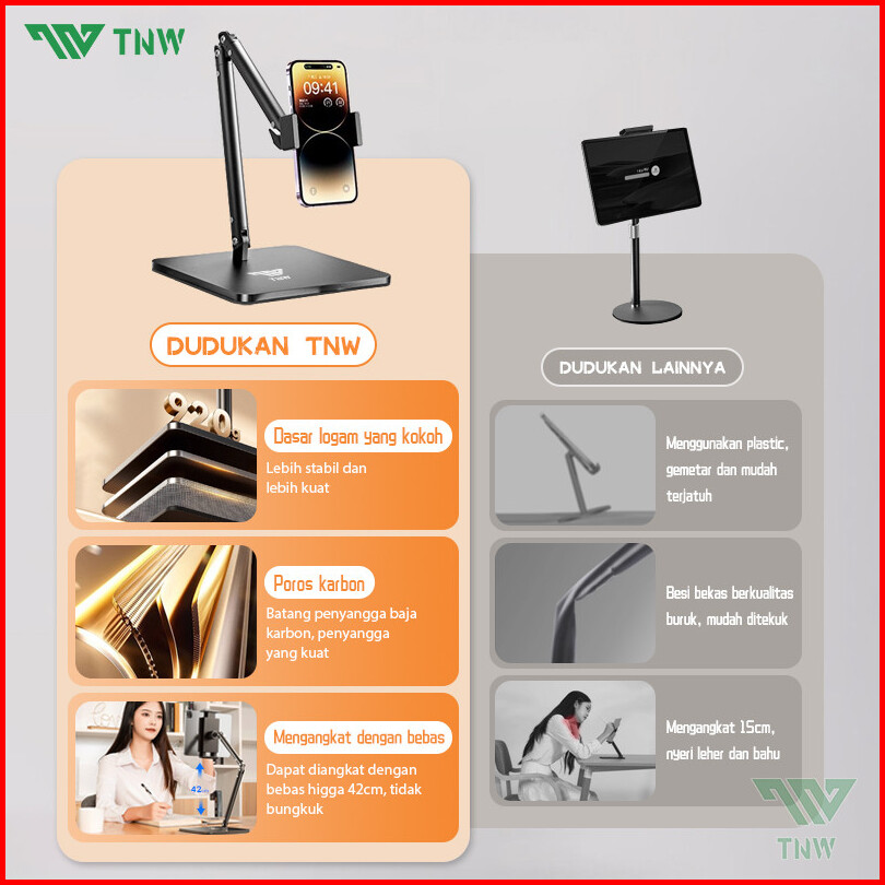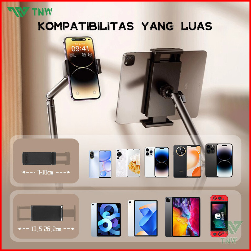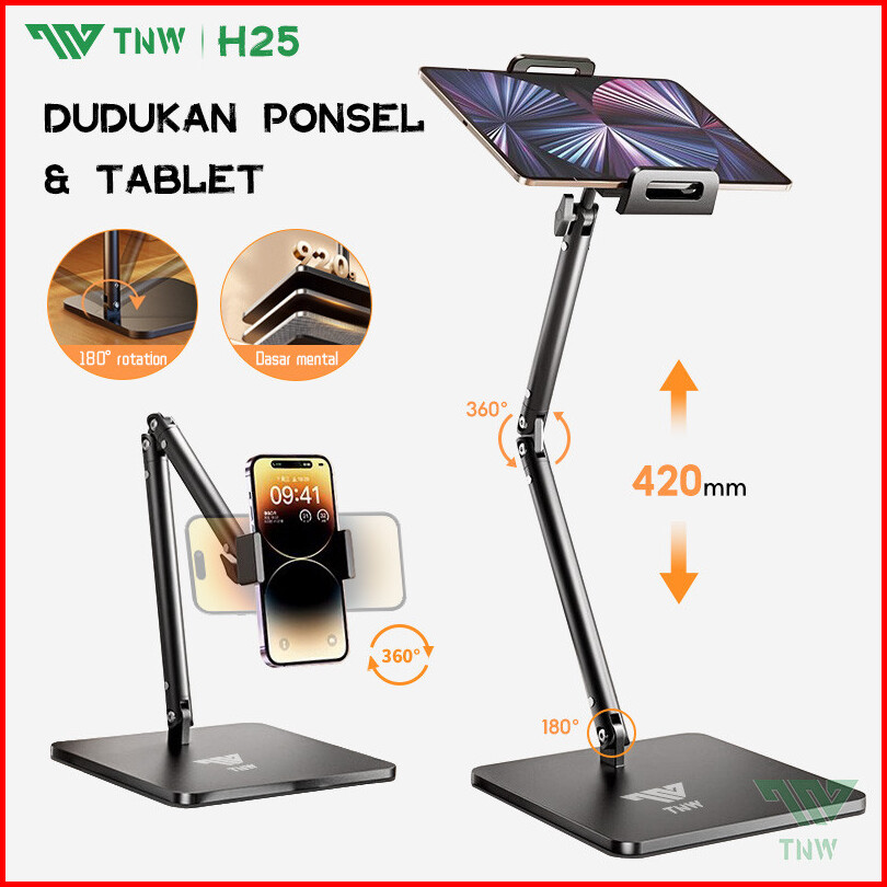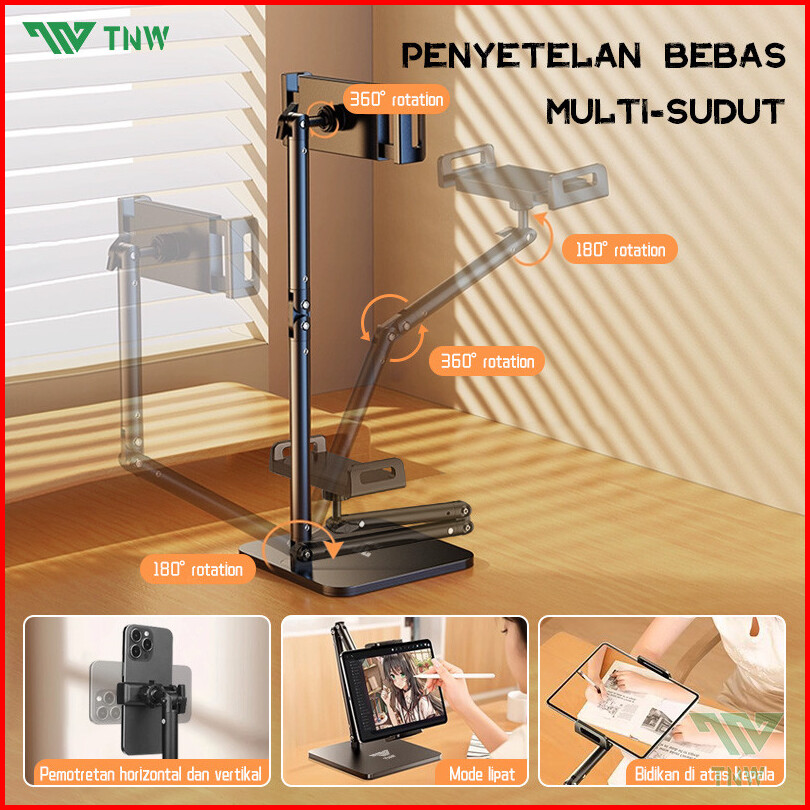 Tnw H25 Stand Holder Handphone Tablet Meja Overhead Phone Stand Flexible Rotate 360 Phone Holder Lazypod Stand Aluminium