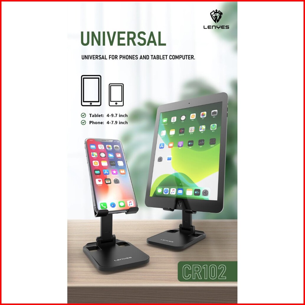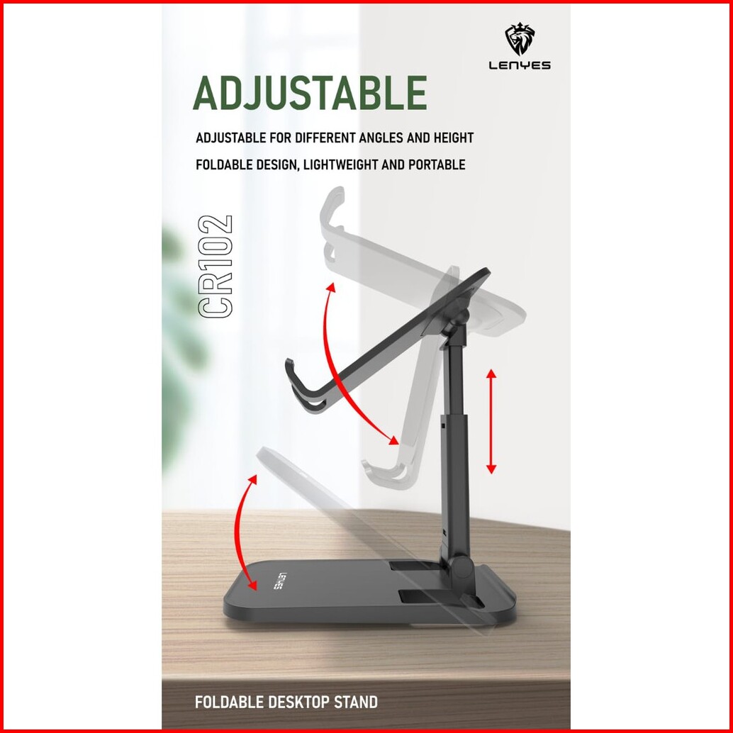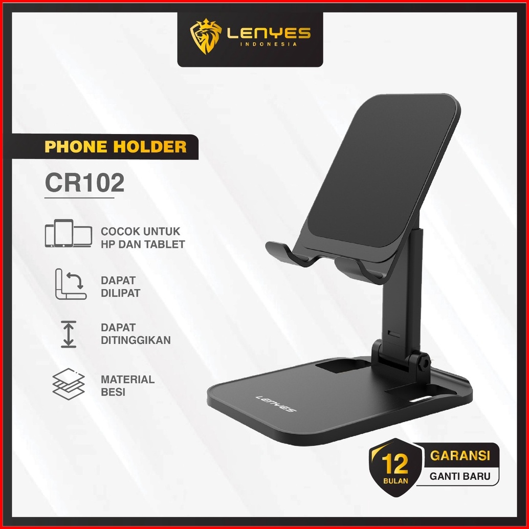 Lenyes Cr102 Folding Desktop Holder Meja Stand Hp Lipat Anti Slip Besi Alluminium Alas Berat