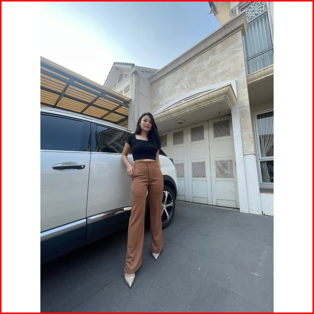 Vm - 558 Celana Kulot Murah Highwaist Celana Kantor Celana Resleting 2 Kancing Saku Aktif