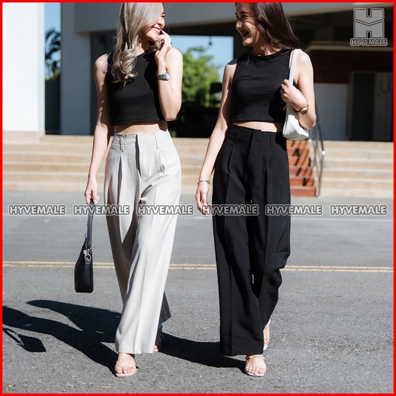 Hyvemale - Cozie Pants Highwaist Cullote Pants Celana Panjang Wanita Loose Pants Terbaru Kekinian