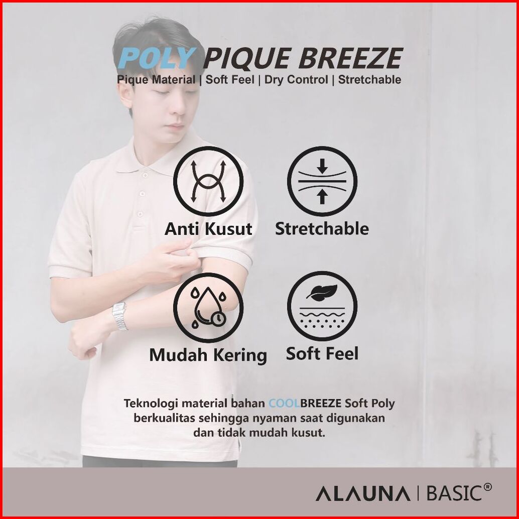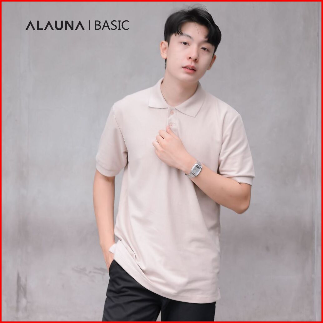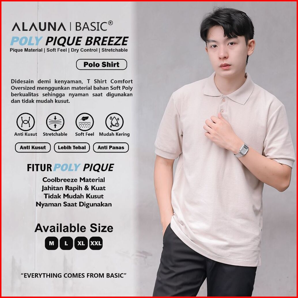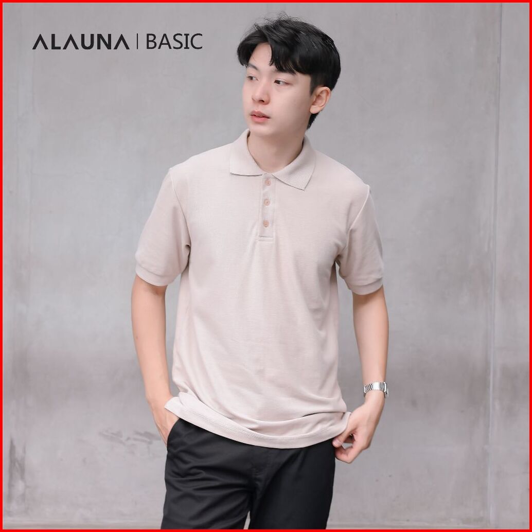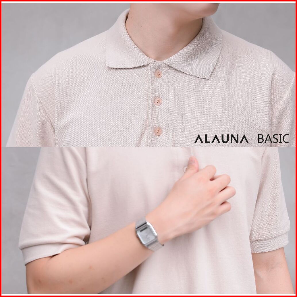 Alauna Basic - Polo Shirt Pria Kaos Kerah Pria Lengan Pendek Bahan Pique Premium Beige