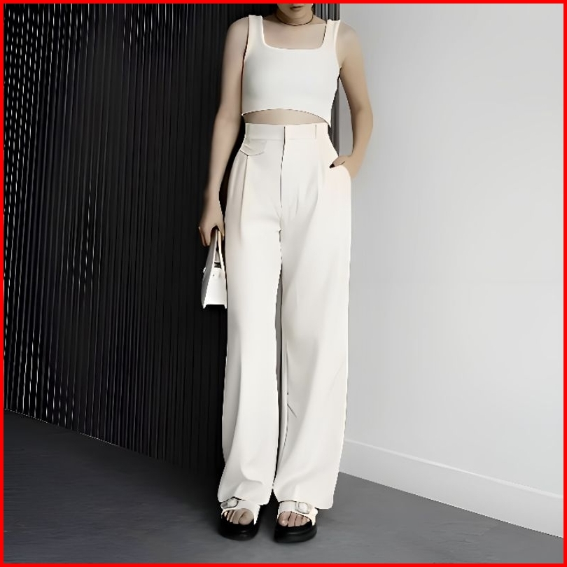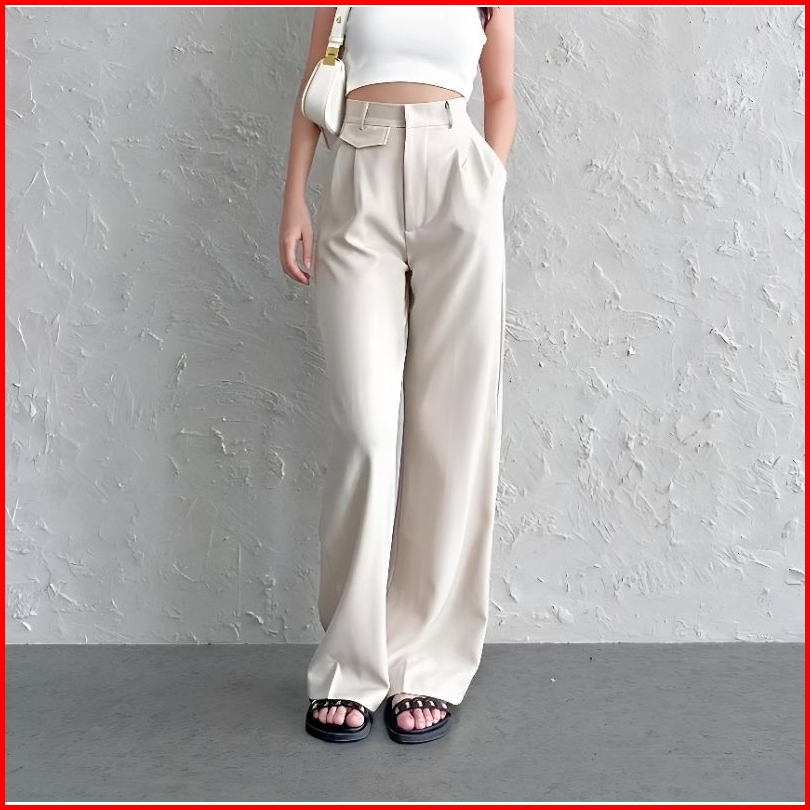 Oro Pants Celana Kulot Highwaist Loose Pants Trousers - Celana Anti Kusut Oro Pants Knit