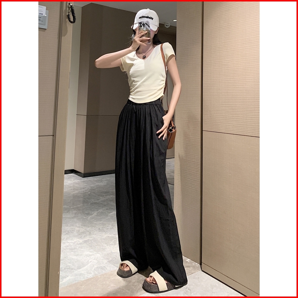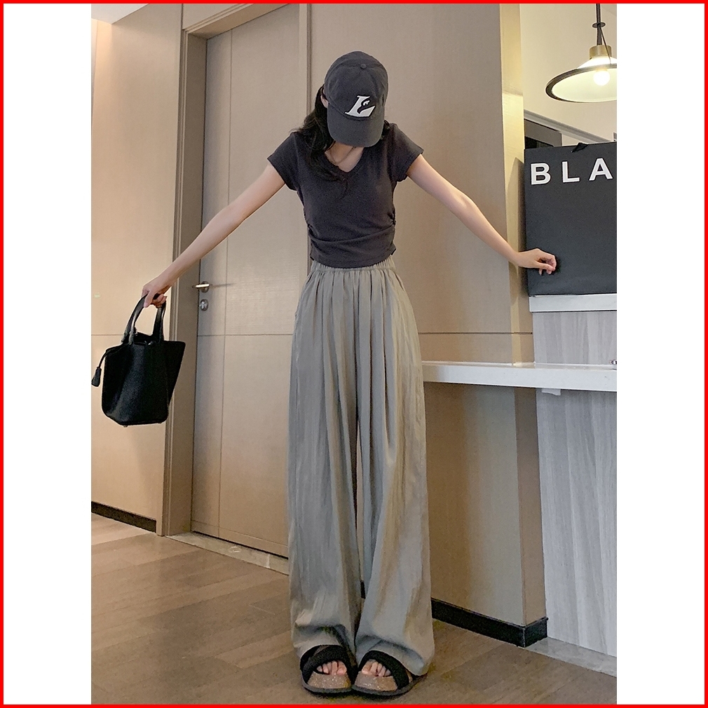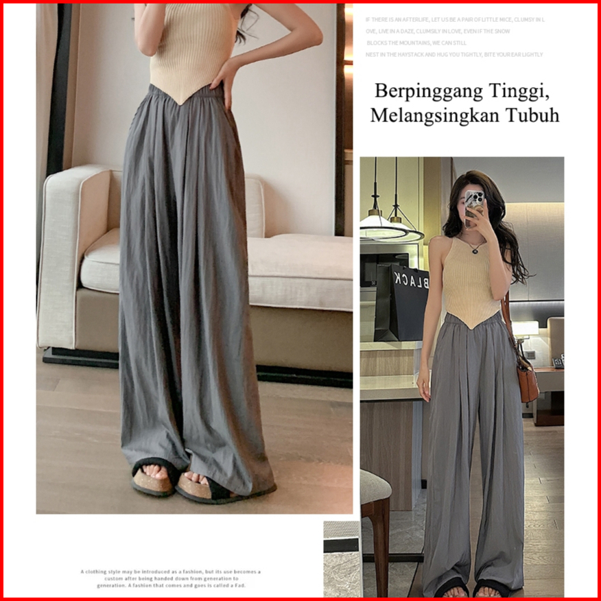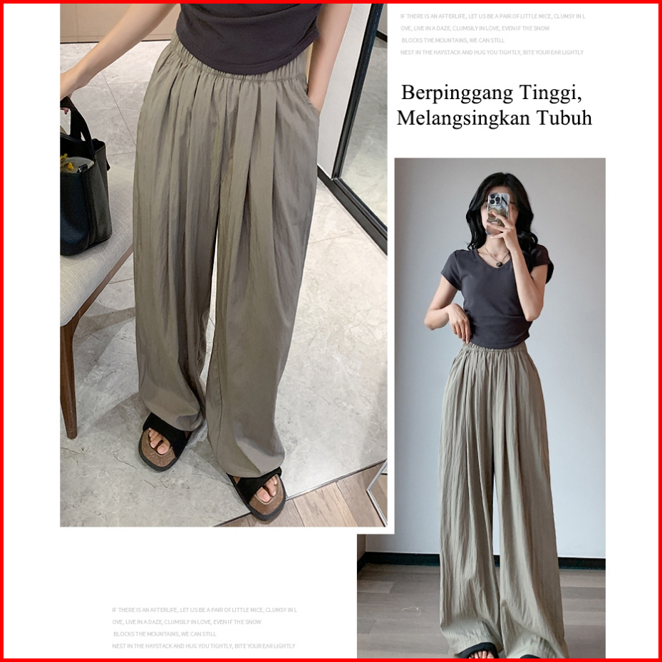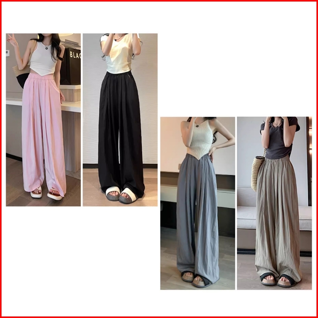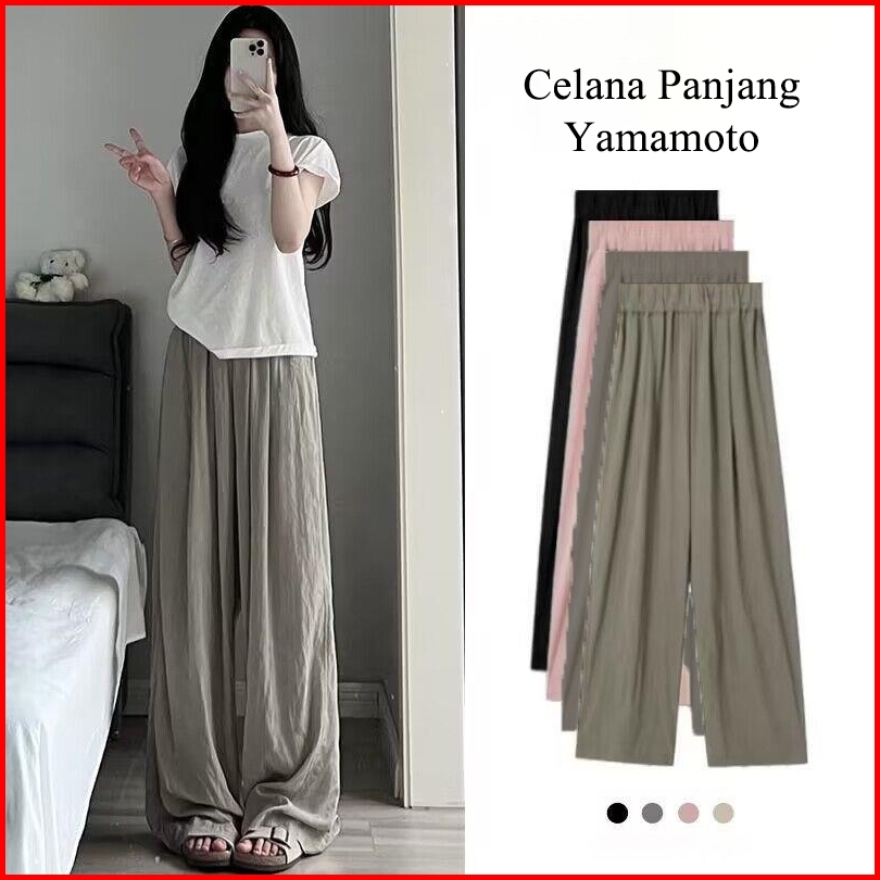 Diqian - Celana Panjang Yamamoto Kulot Celana Lebar Dan Kulot Kasual Berlipit Ramping Lurus Longgar Pinggang Tinggi Wani