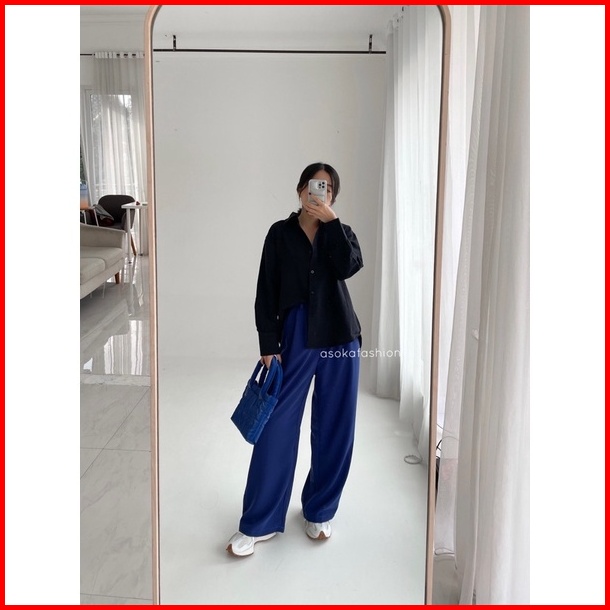 Loose Pants Trousers Navy Celana Anti Kusut Wanita Celana Kulot Wanita Celana Kantor Formal