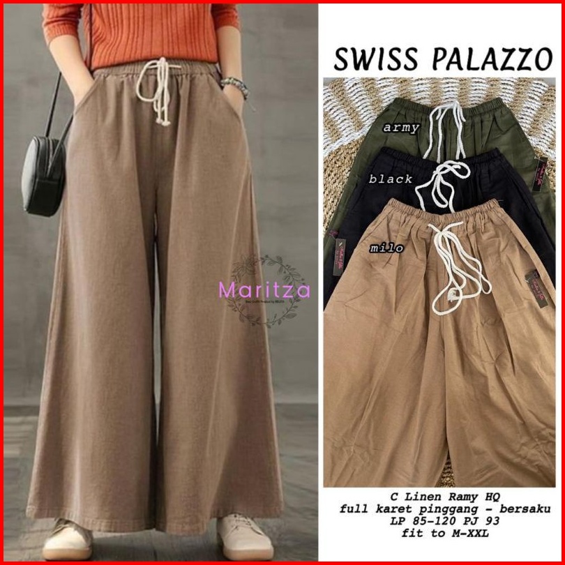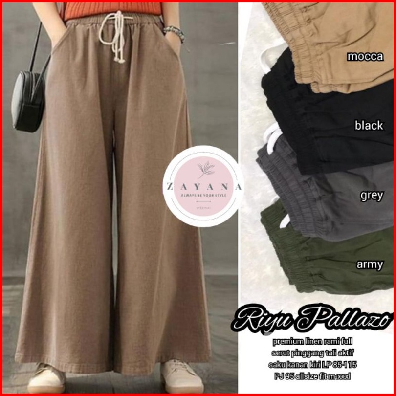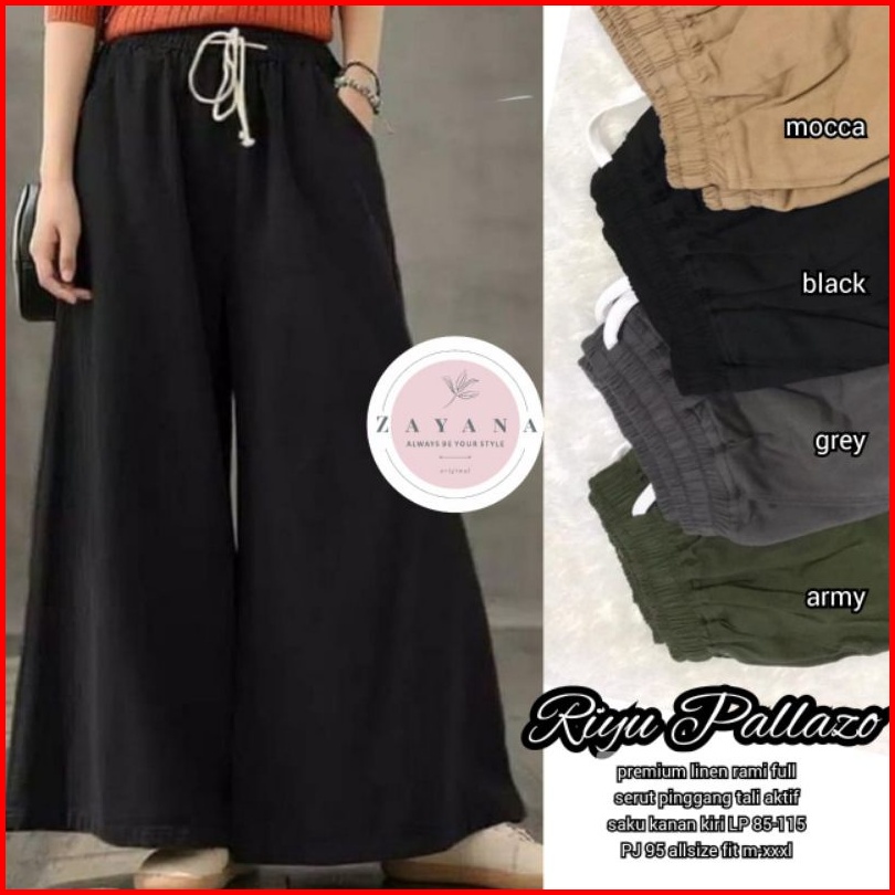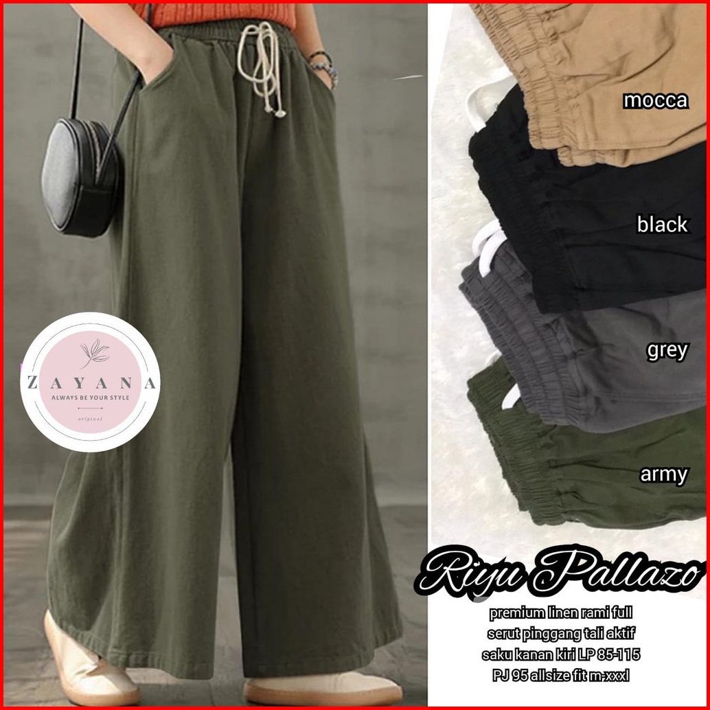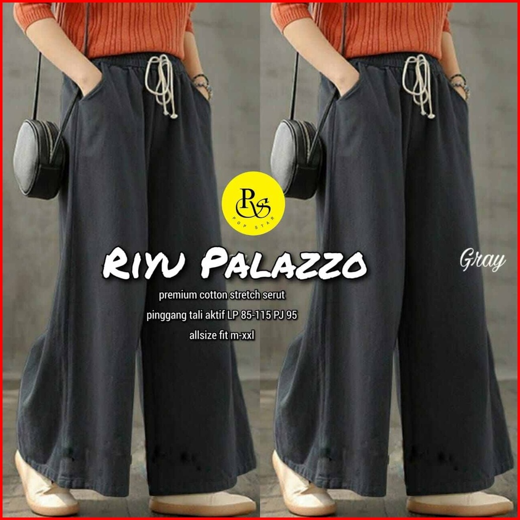 Riyu Pallazo Premium Cotton Strech - Kulot Katun Twill Combed Hits Ootd Selebgram Fashion Grosir Murah Wanita
