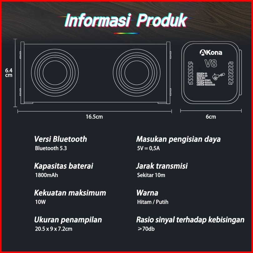 Akona Speaker Bluetooth Cyberpunk 13.6w Daya Tinggi Speaker Bass Bluetooth Rgb Led Light Akrilik Transparan V8 Spiker Bl