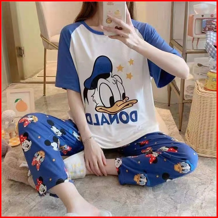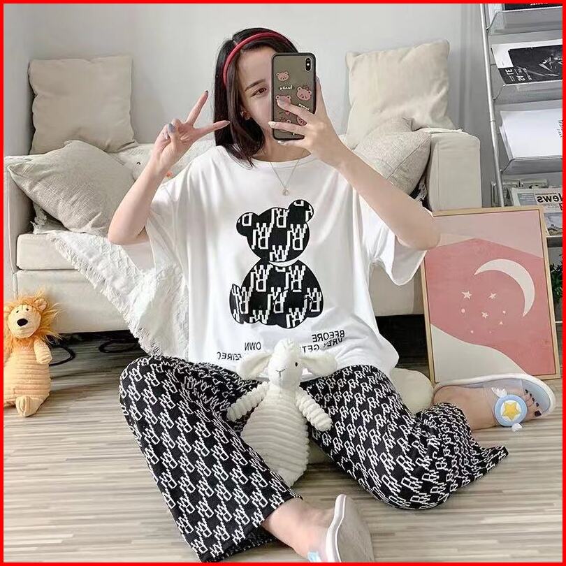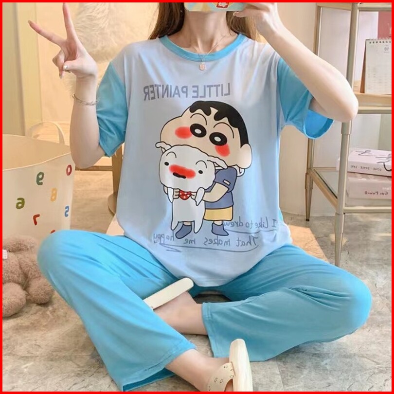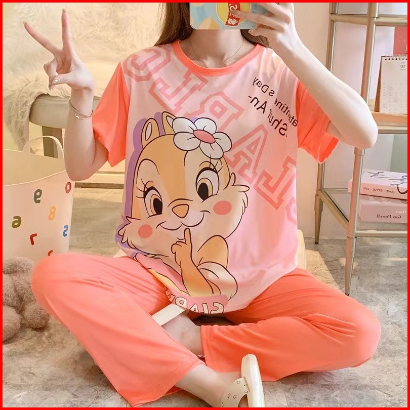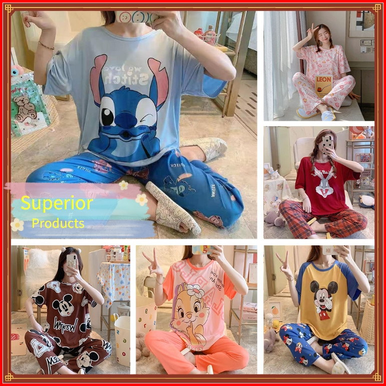 Gratis Ongkircodsetelan Baju Tidur Wanita Piyama Wanita Lengan Pendek Karakter Lucu Set Piama Wanita Oversize 2 In 1 Pia