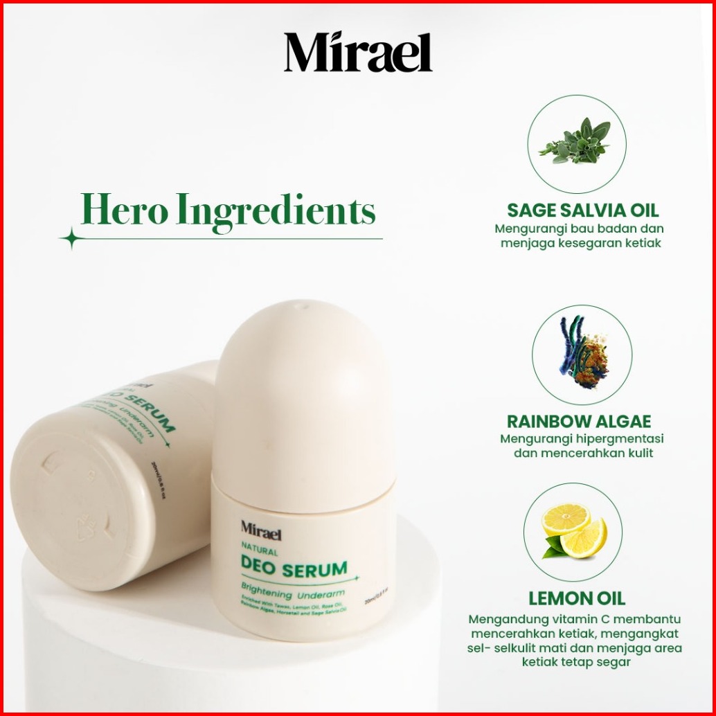 Mirael Natural Deodorant Serum - Deo Tawas Roll On Menahan Bau Badan Mencerahkan Ketiak