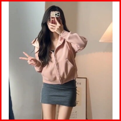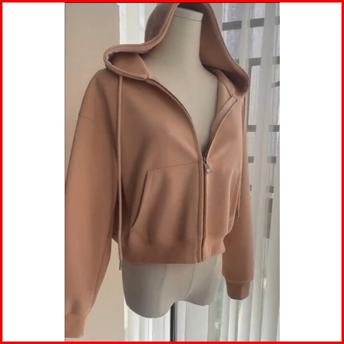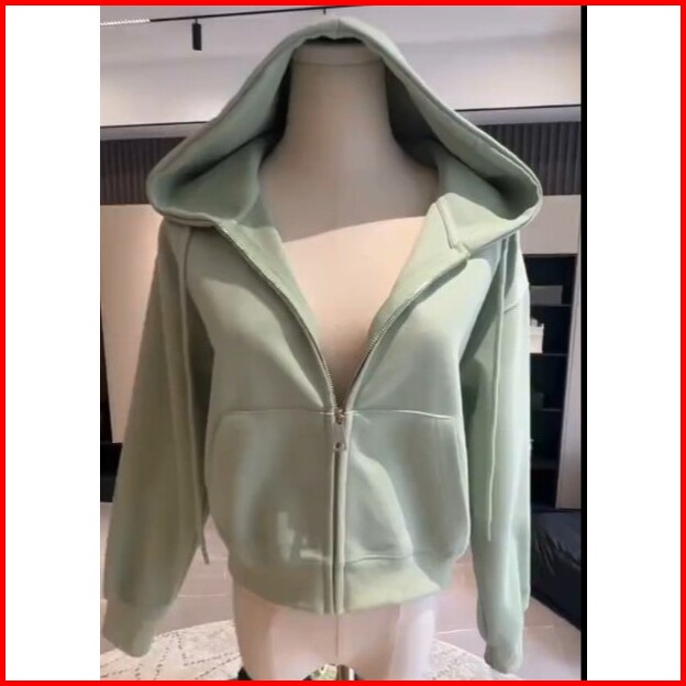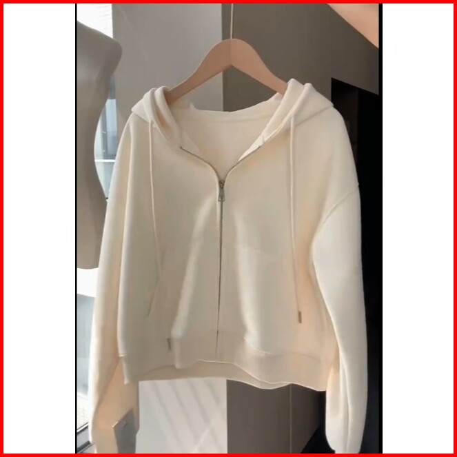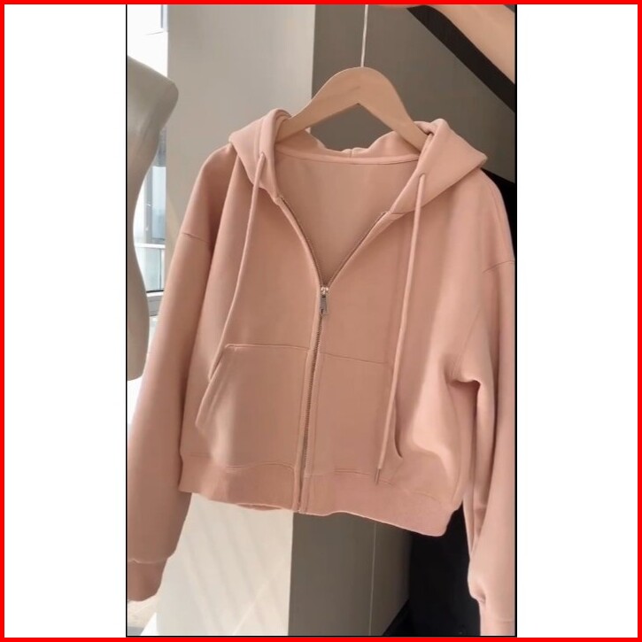 Hoodie Zipper Crop Top Wanita Kekinian Jaket Sweater Cewek Basic Terbaru Korean Style Atasan Wanita Polos Lengan Panjang