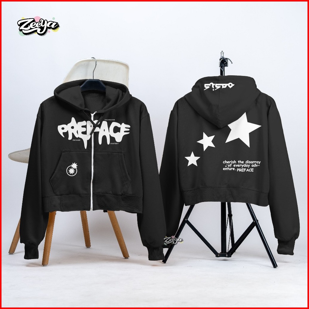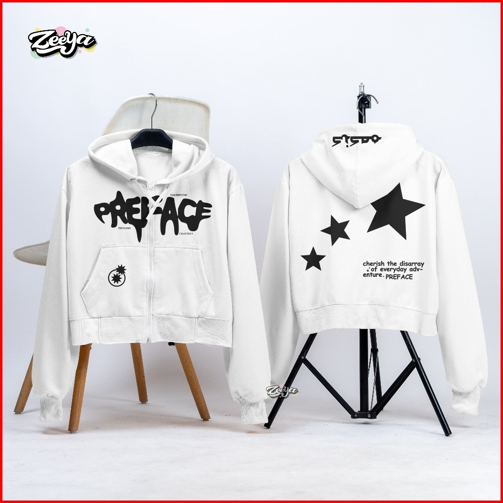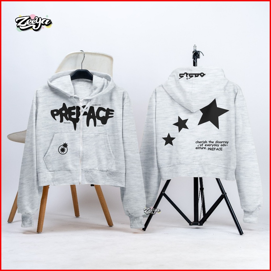 Zy - Hoodie Crop Wanita Preface Star Of Everyday Zipper Hoodie Crop Wanita Streetwear Style Anak Remaja Dewasa Kekinian