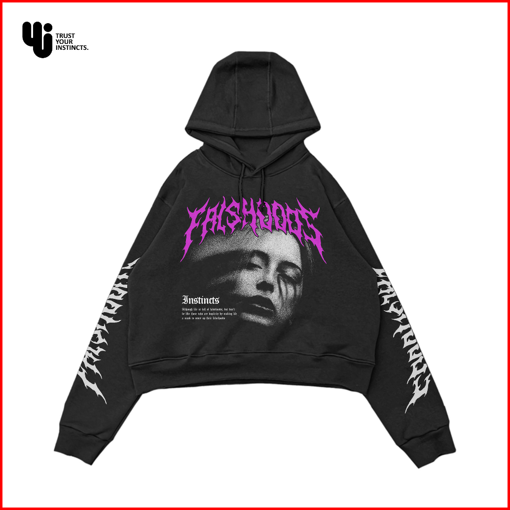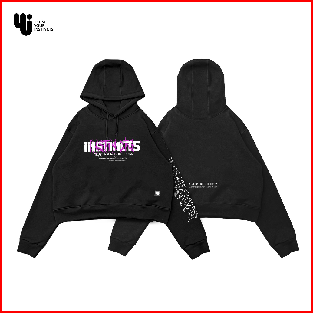 Hoodie Crop Black Oversize Unisex