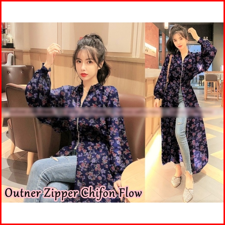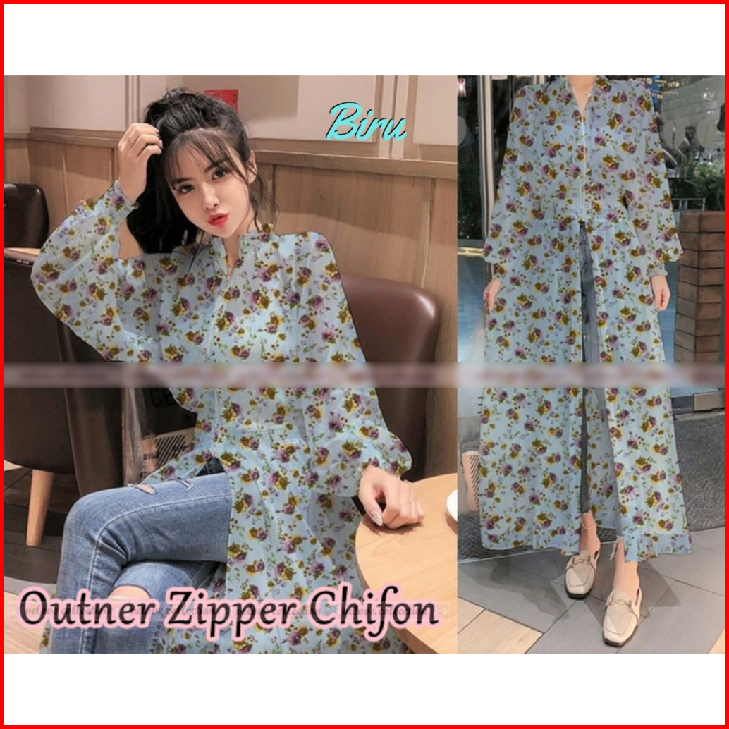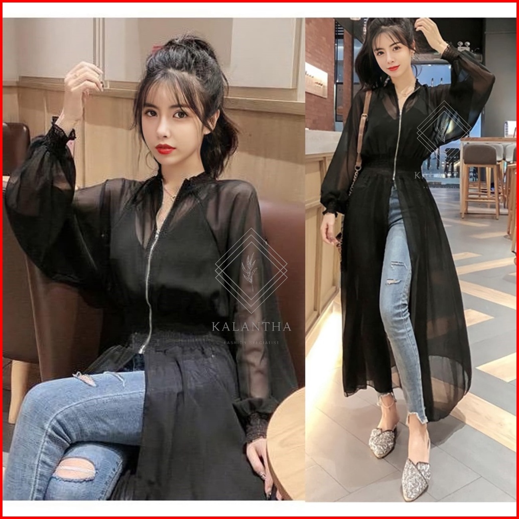 Kalantha Fashion Outer Zipper Chiffon Cardigan Chifon Warna Cantik