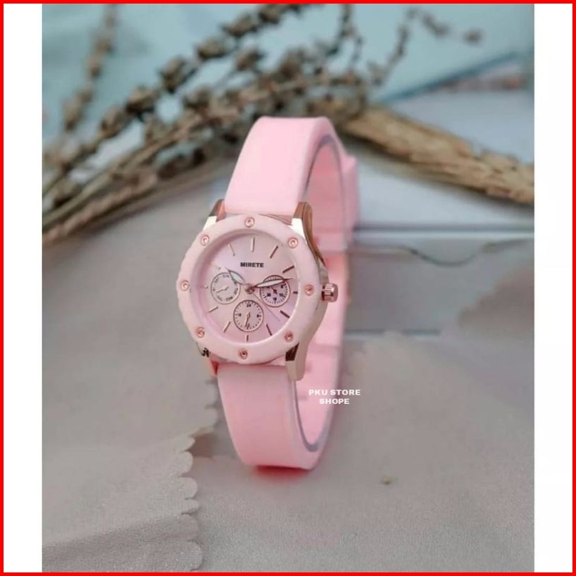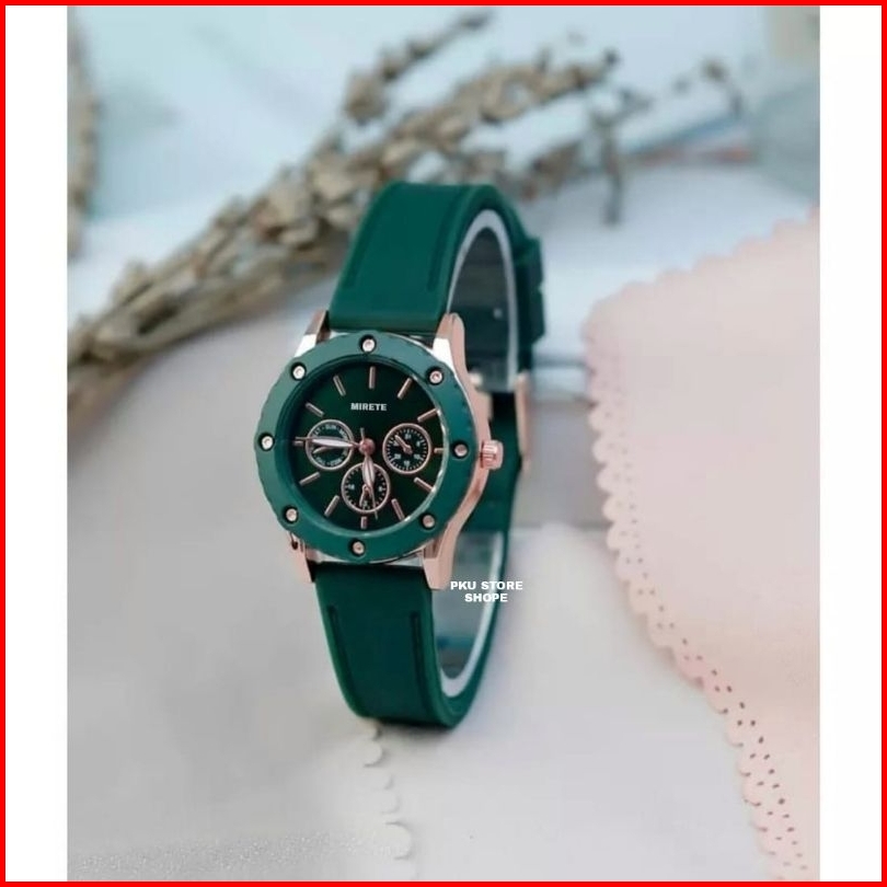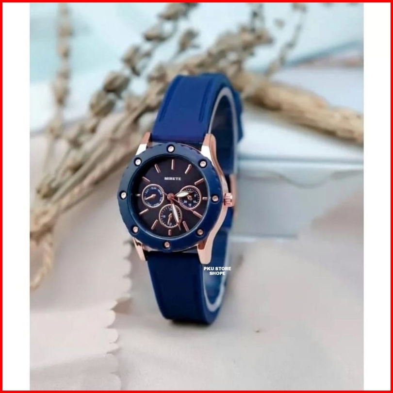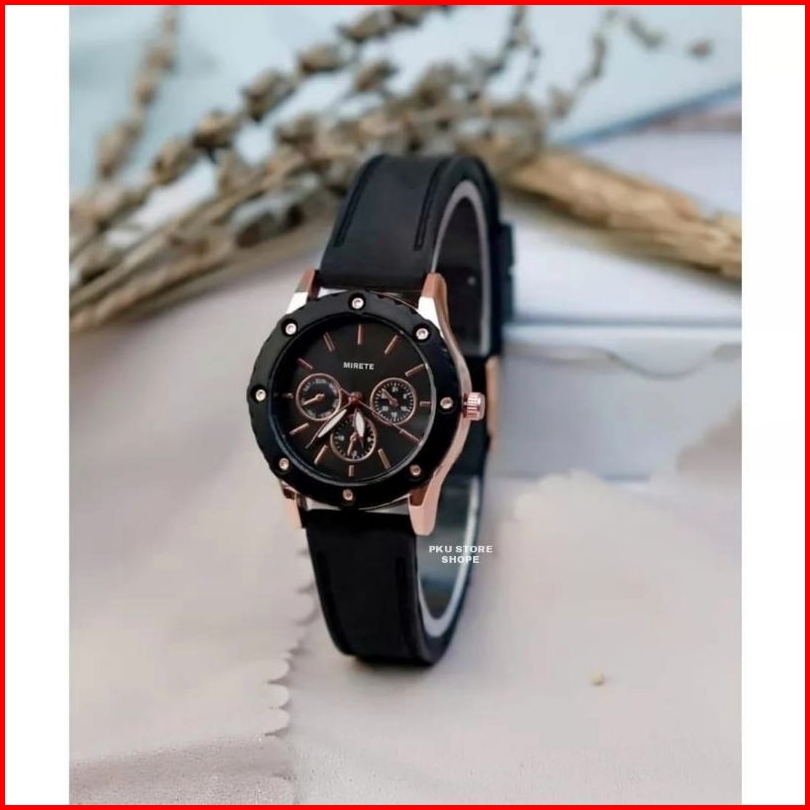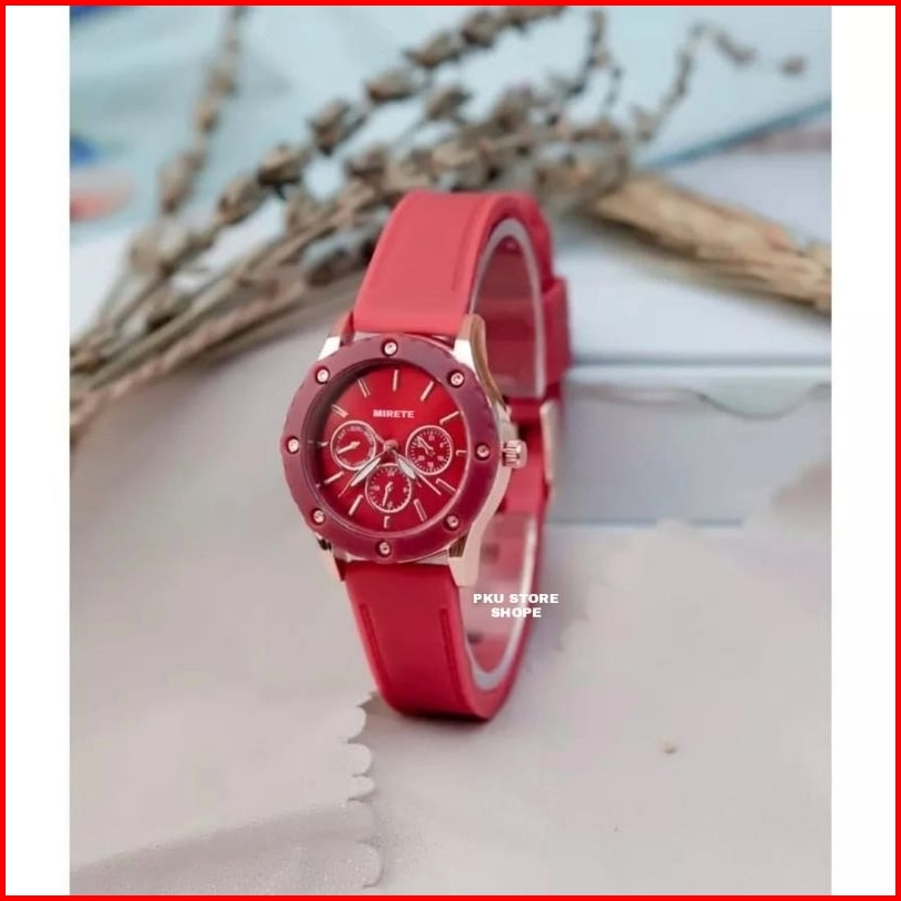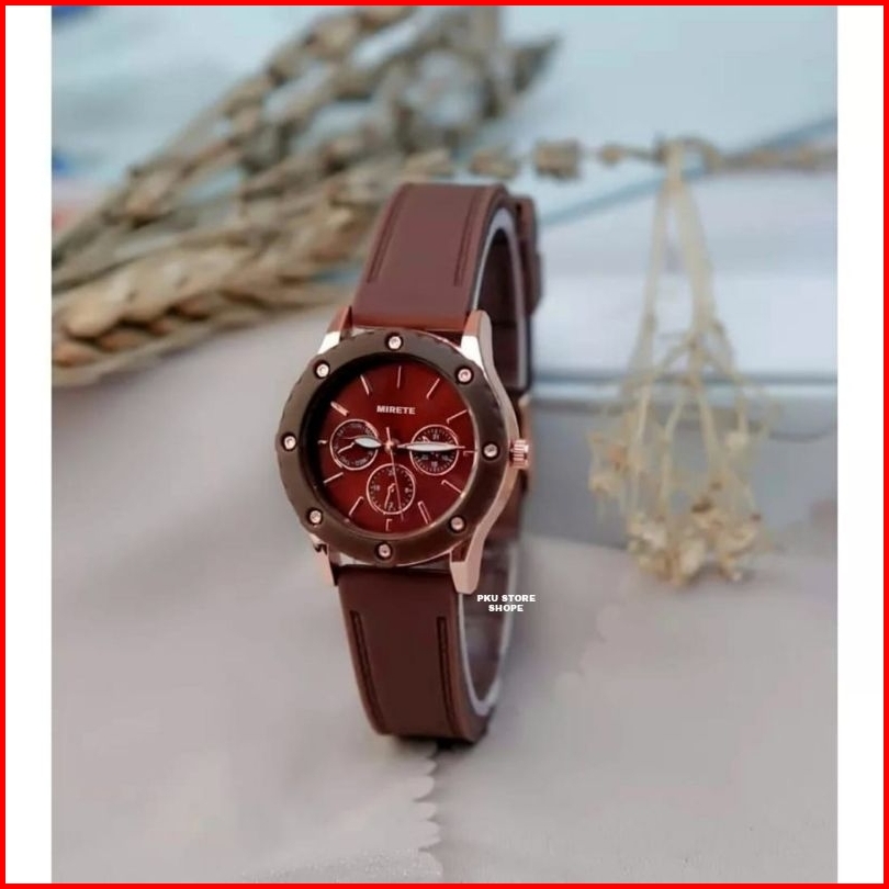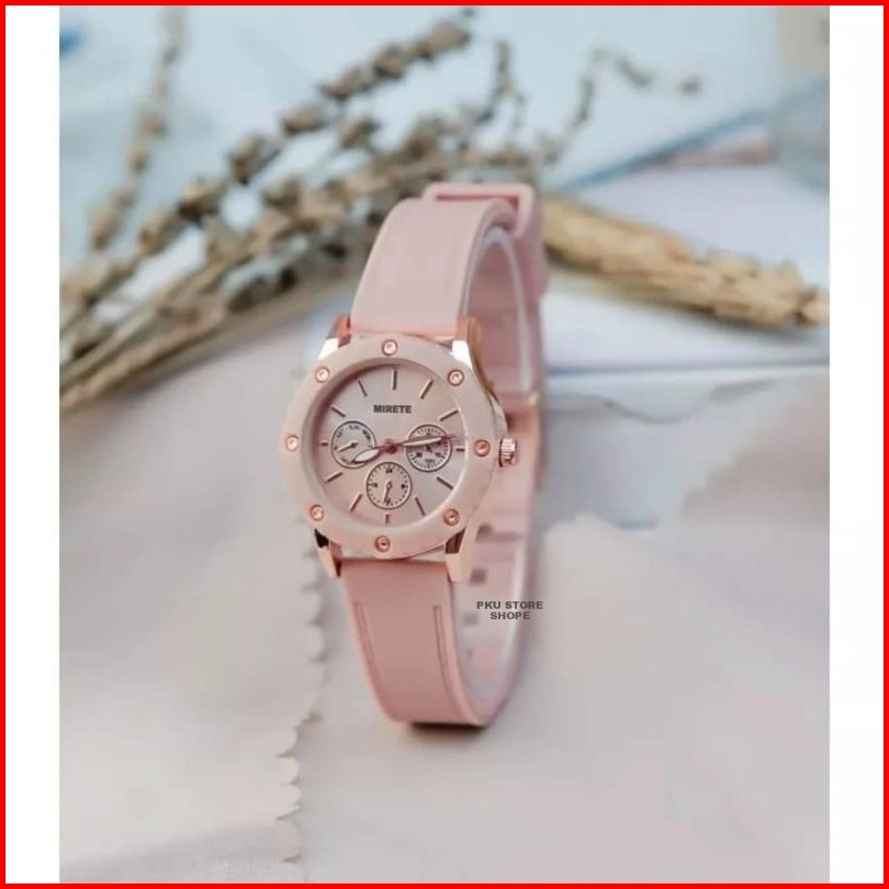 Jam Tangan Wanita Mirete Original Analog Tahan Air Bestseller Strap Ruber Mewah Elegan Olahraga Sporty Jam Tangan Fashio