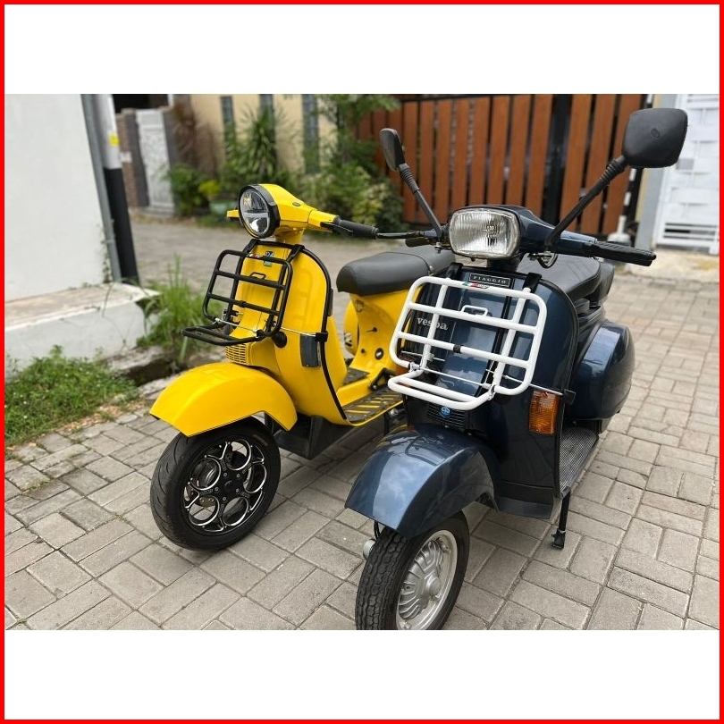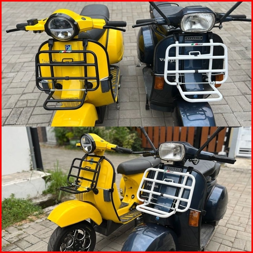 Frontrack Rak Depan Vespa Model Fa Italy Lebar Premium Tebal Hitam Putih Coating Detail Original Import Cocok Untuk Semu