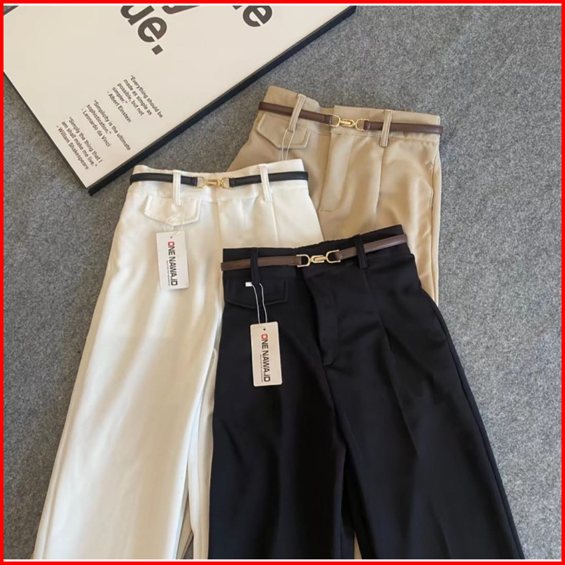 Velicia Oro Pants Knit Highwaist Cullote Pants - Hitam Ivory Celana Panjang Korean Style