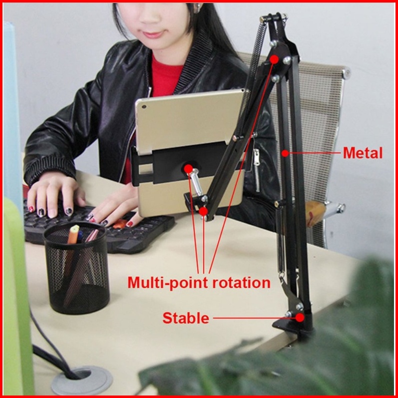 Lazypod Stand Holder Ipad Tablet Hp Jepit Meja Model Boom Arm