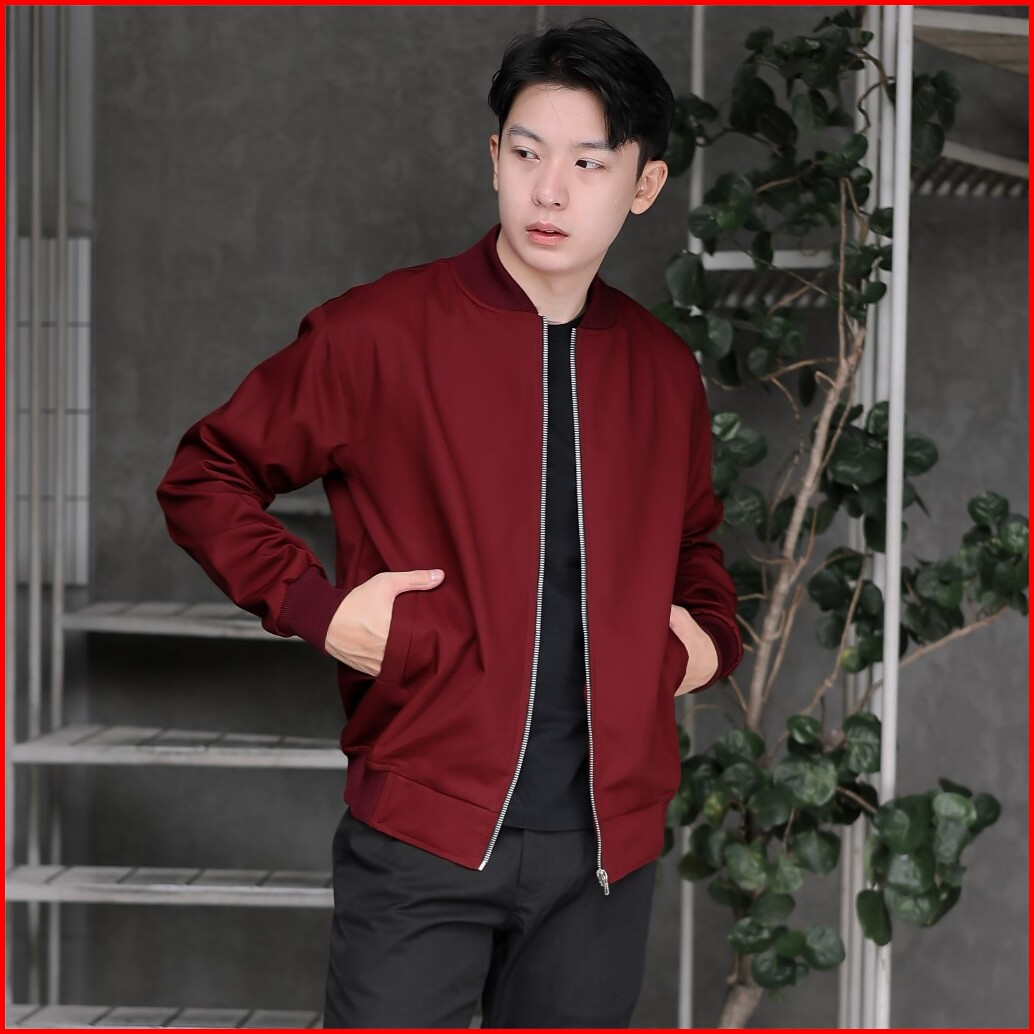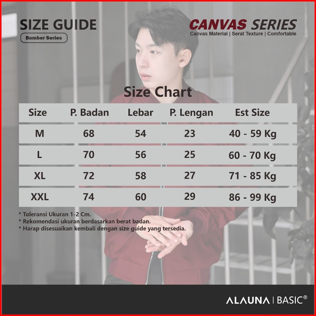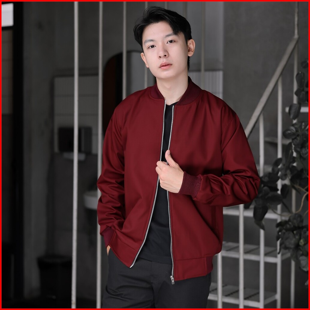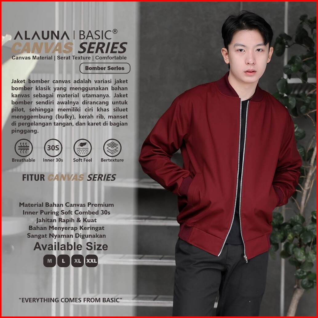 Alauna Basic - Jaket Pria Bomber Canvas Series Premium Maroon