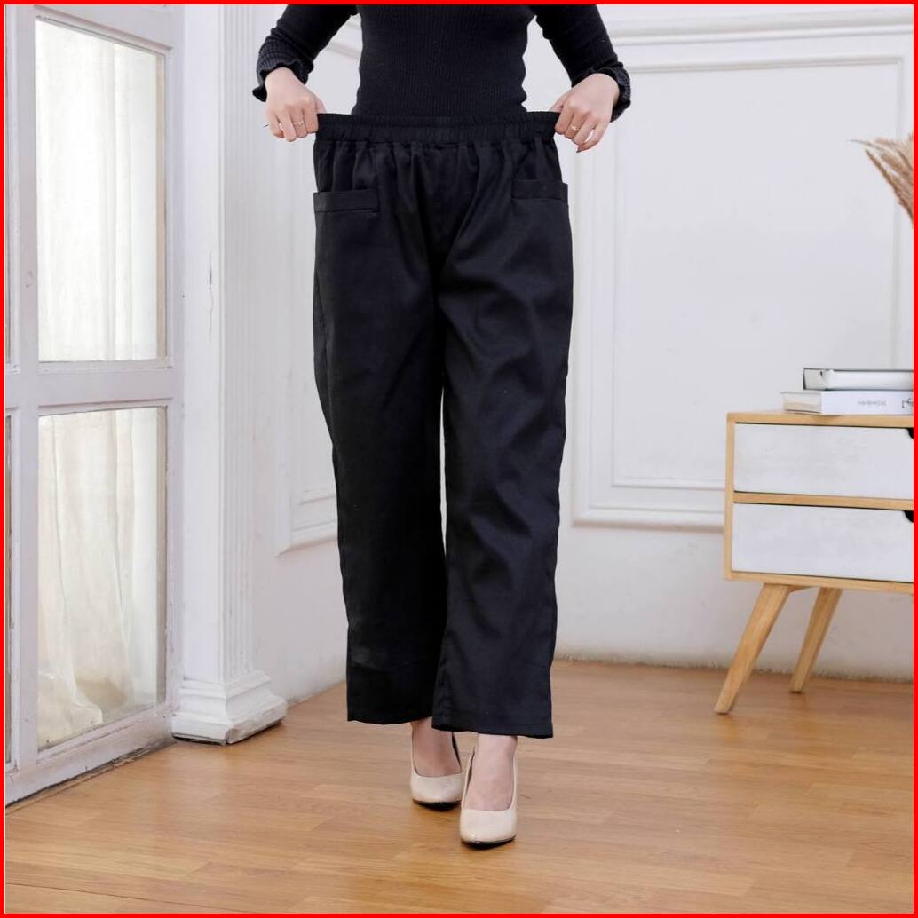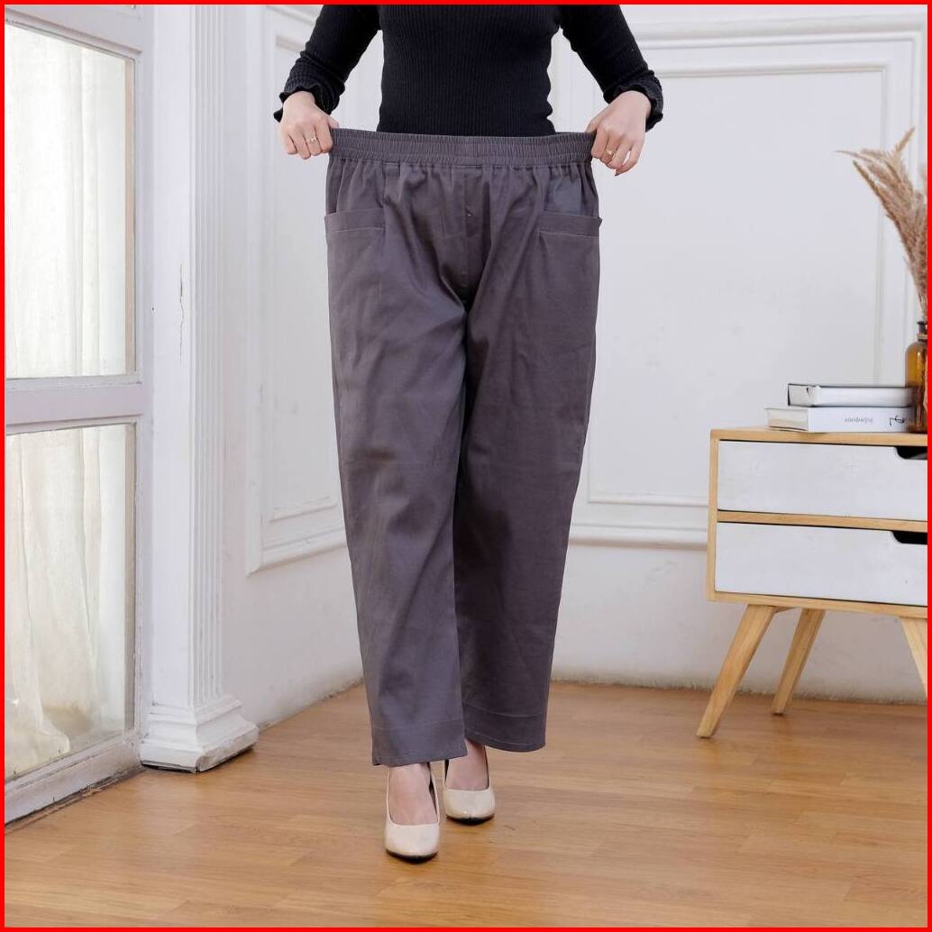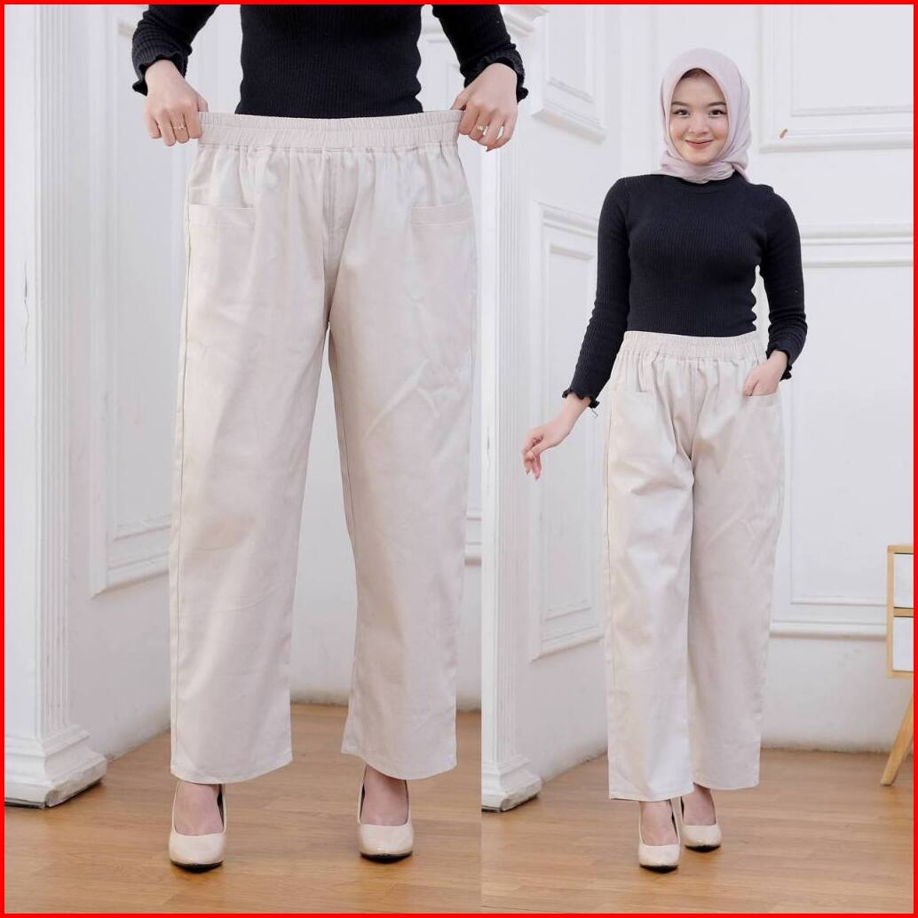 Kanaya Style - Celana Kulot Panjang Wanita Korean Loong Pants Jumbo Bahan Katun Twill Premium Stretch Tebal Pinggang Ful