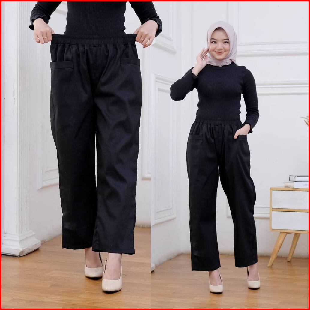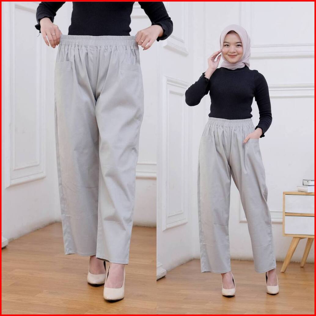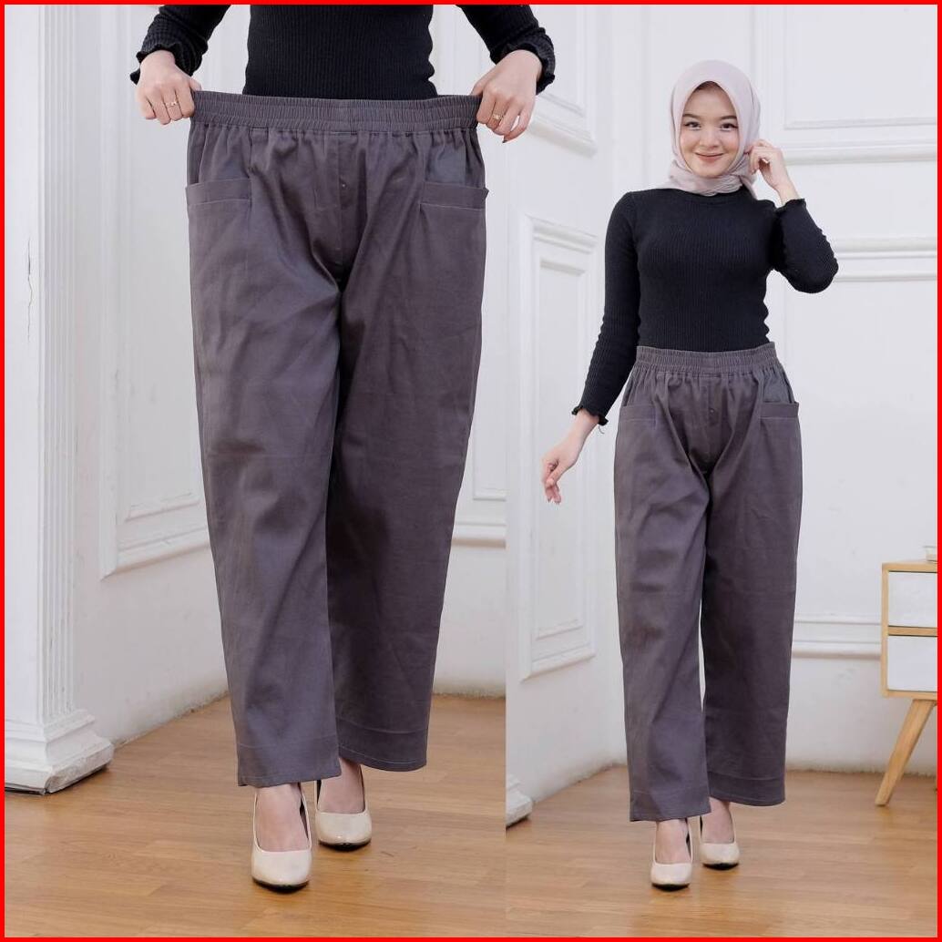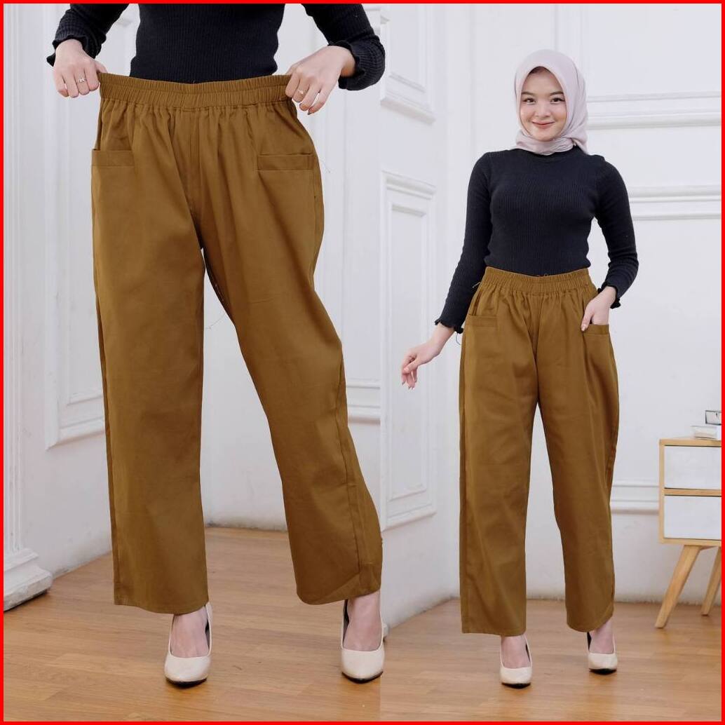 Kanaya Style - Celana Kulot Panjang Wanita Korean Loong Pants Jumbo Bahan Katun Twill Premium Stretch Tebal Pinggang Ful