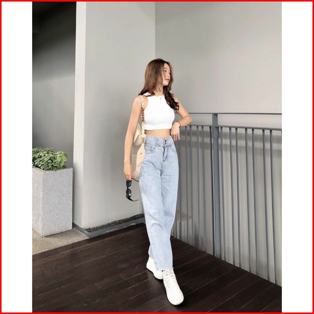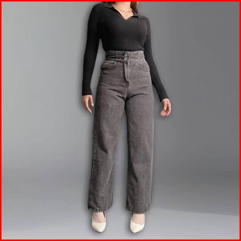 Celana Kulot Jeans Otentik J23 - Highwaist Kulot Jeans Loose Wanita - Celana Kulot Silang Premium