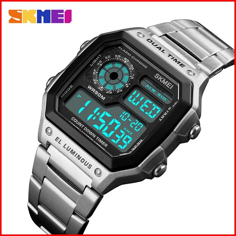 Skmei 1335 Jam Tangan Pria Wanita Digital Tali Stainless Anti Air Watchkite Wkos