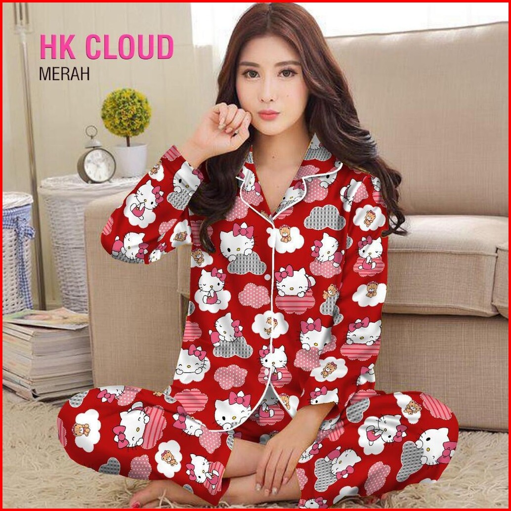 Pluto Stelan Baju Tidur Wanita Dewasa Piyama Pp Pajamas Hk Cloud Hello Kitty Awan Katun Jepang