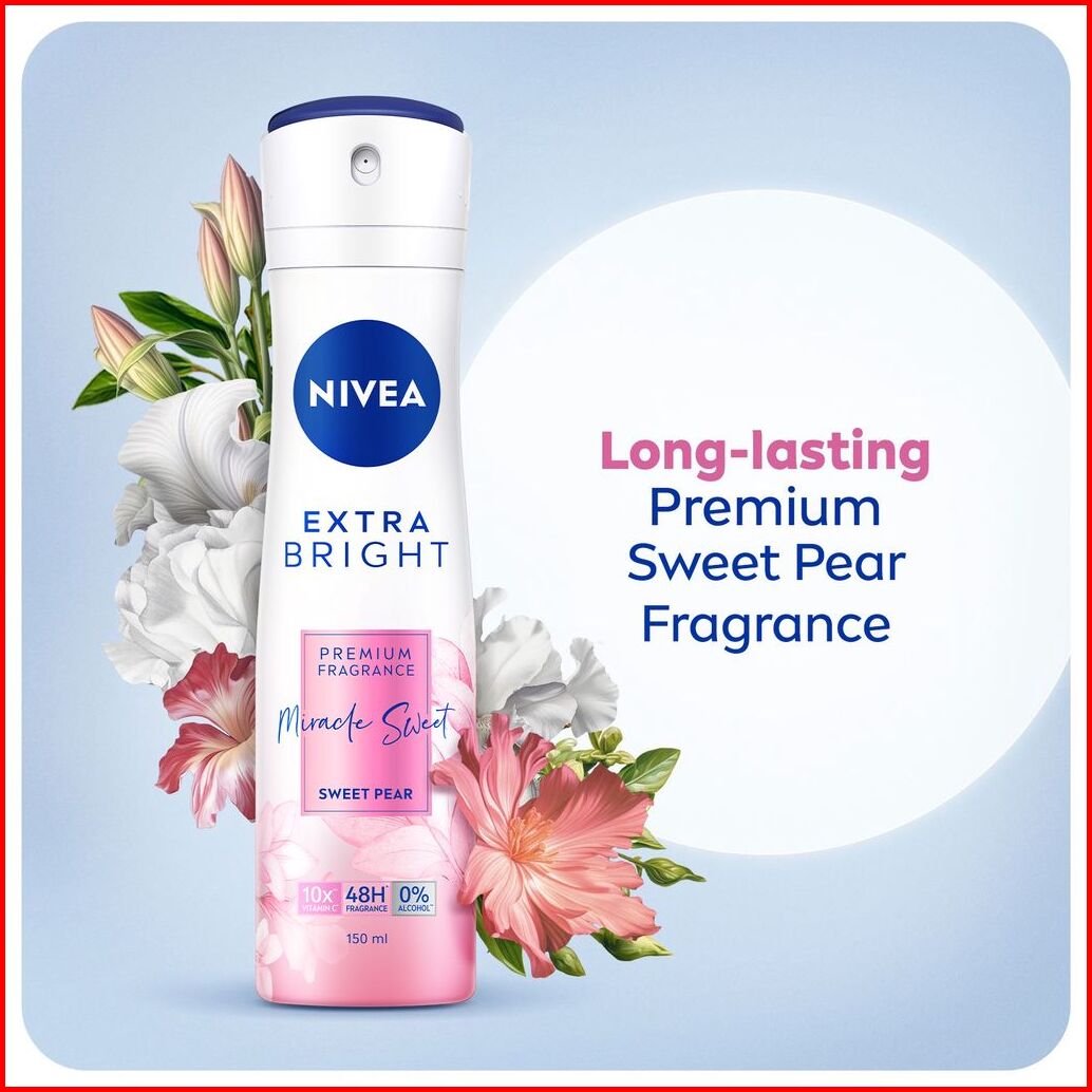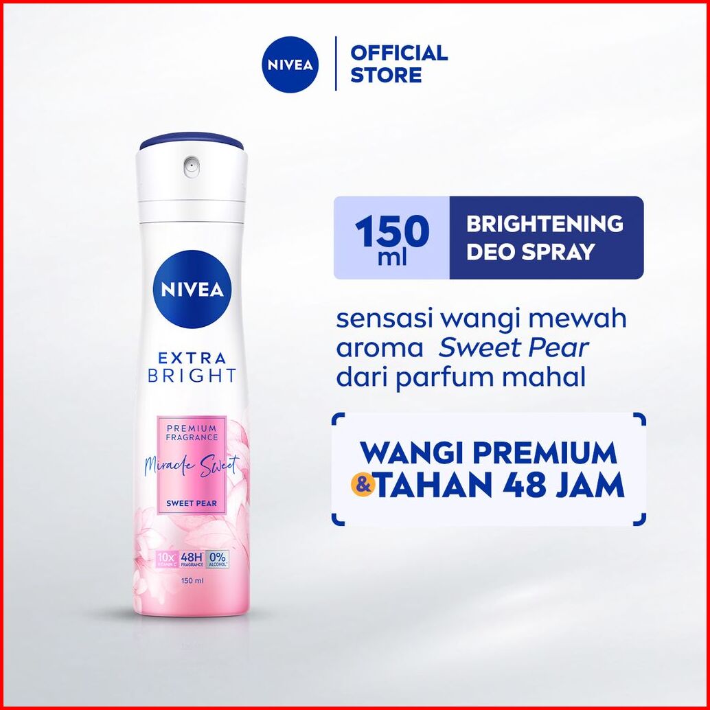 Nivea Deodorant Spray Extra Bright Premium Fragrance Miracle Sweet 150ml - Deodoran Semprot Wanita Mencerahkan Brighteni