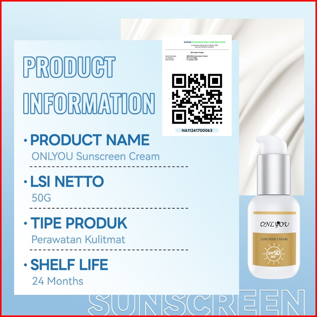 Bpomonlyou Sunscreen Cream Menyegarkan Anti-aging Sunscreen Spf 50 Pa Whitening Sunscreen 50ml Mencegah Penuaan Dini Sun