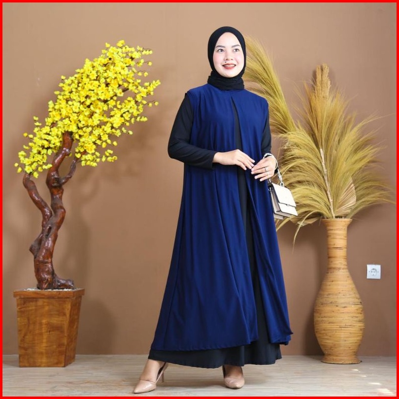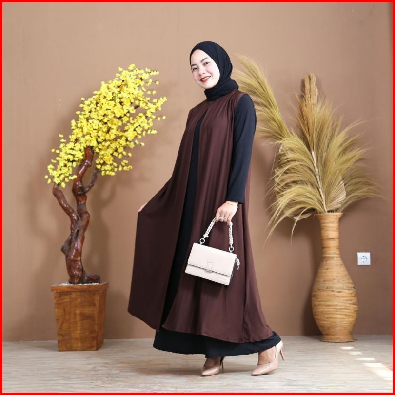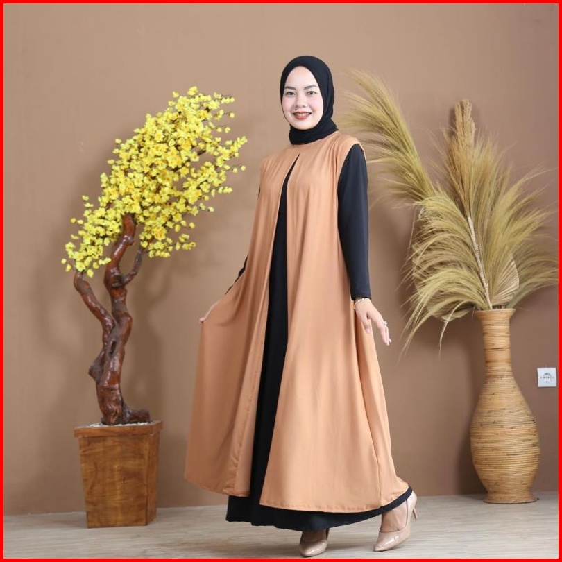 Long Cardi Wanita Tanpa Lengan Premium Long Outer Kutung Outer Wanita Jumbo Ld 120-145 Premium Jumbo