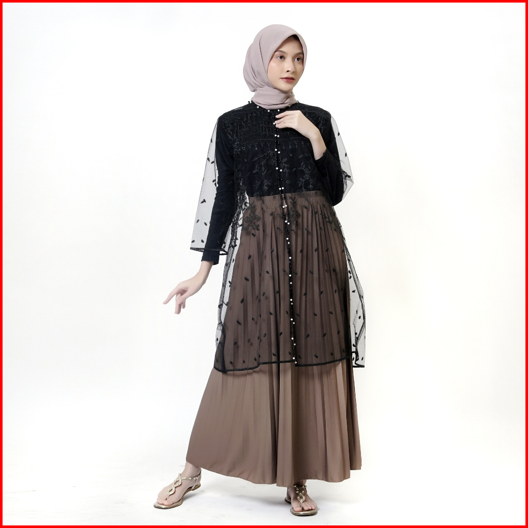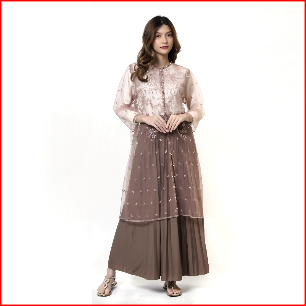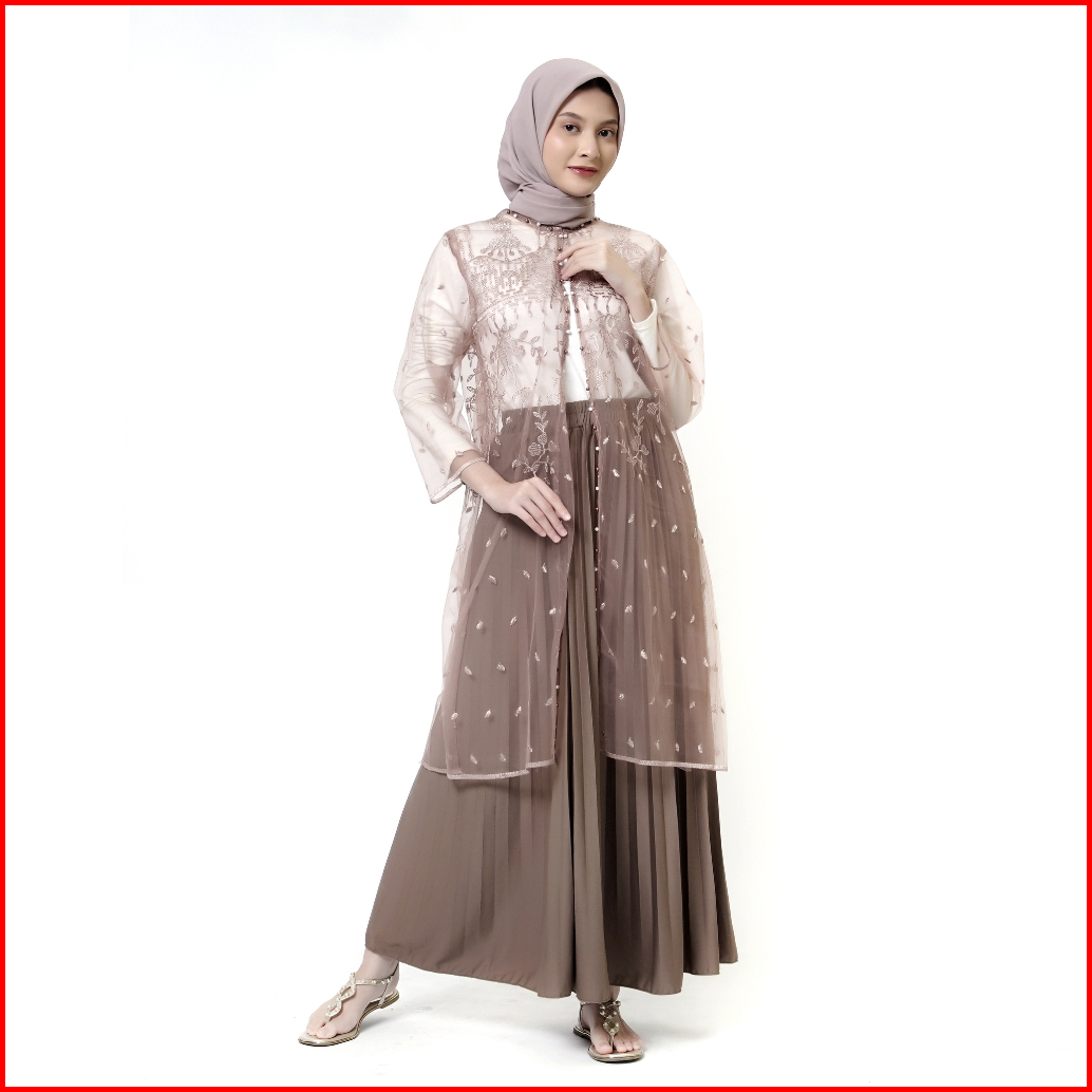 Vivi Long Vest Outer Full Brukat Etnik Sapto Cardigan Outerwear Formal Wanita Bahan Burkat Premium