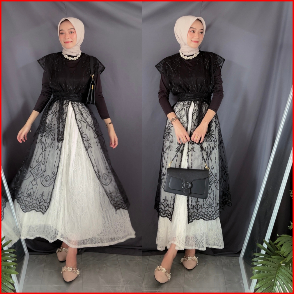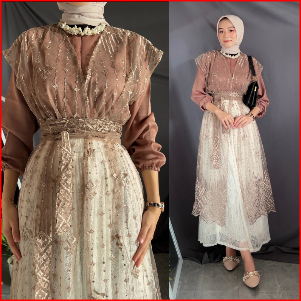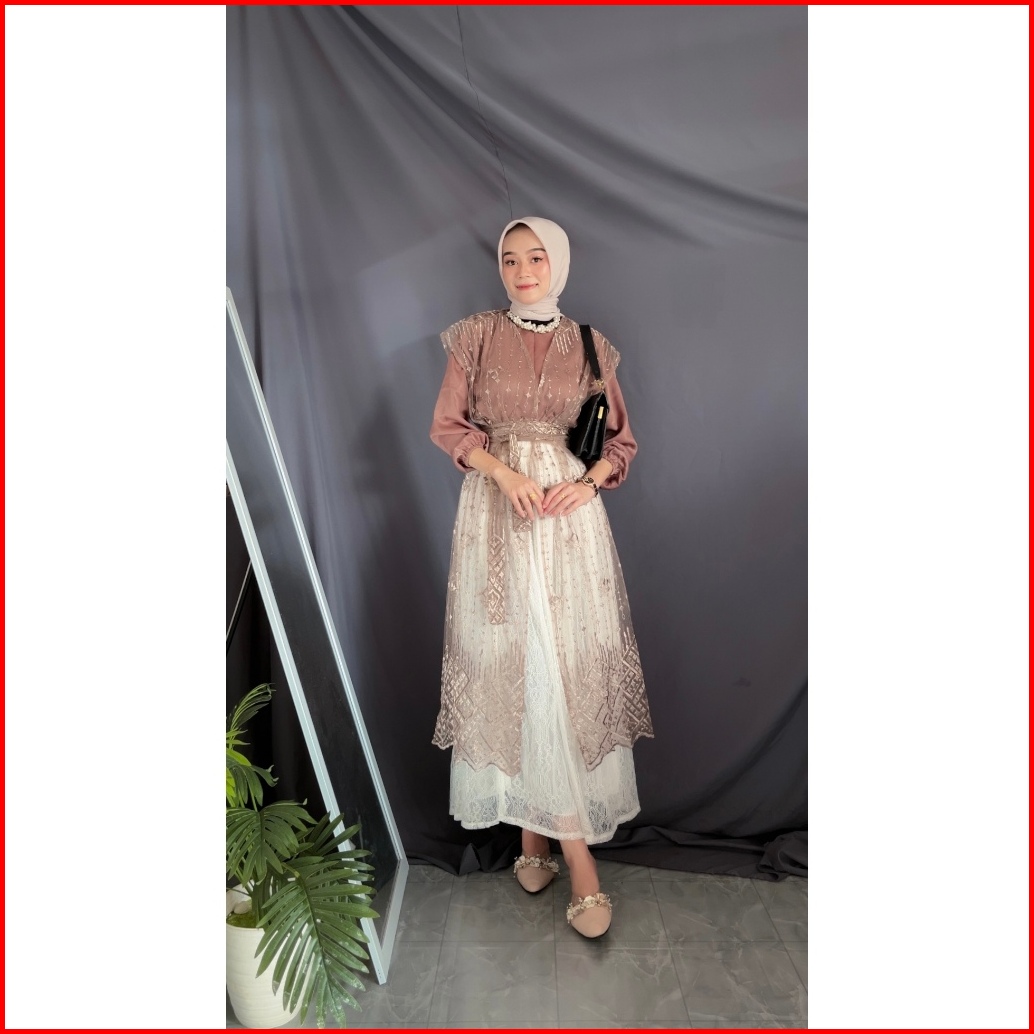 Vivi Long Vest Outer Full Brukat Etnik Sapto Cardigan Outerwear Formal Wanita Bahan Burkat Premium