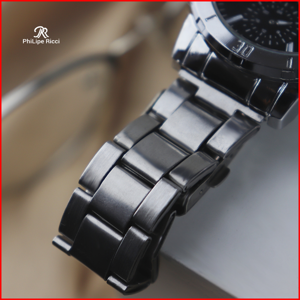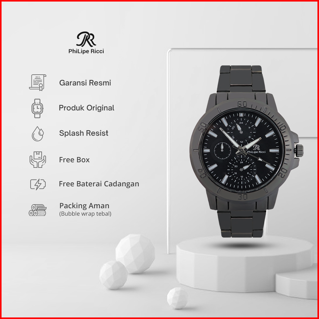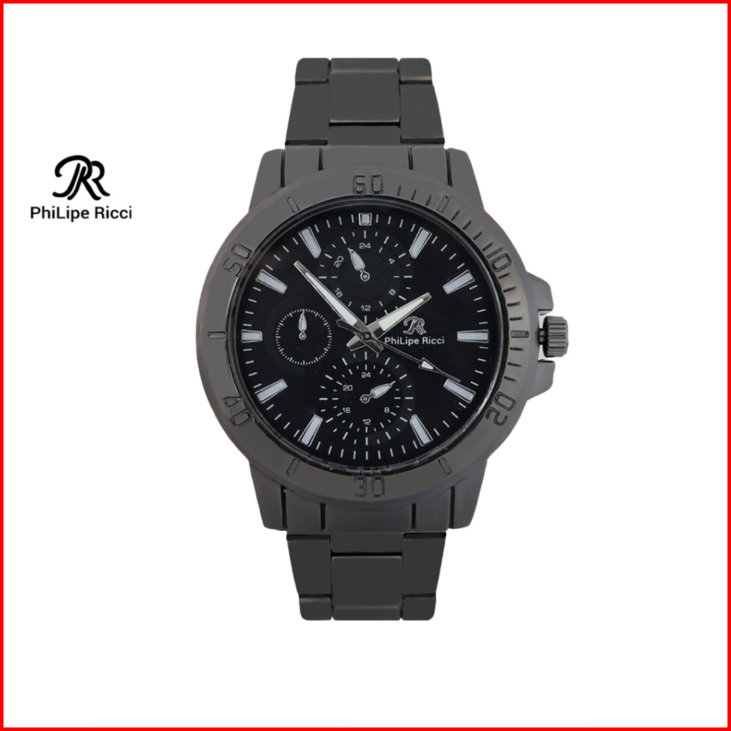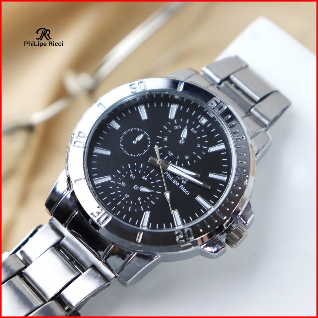 Philipe Ricci Jam Tangan Pria Rantai Analog Diameter Bulat Ukuran Sedang Strap Tali Besi Gaya Modern Formal 5024 Free Bo